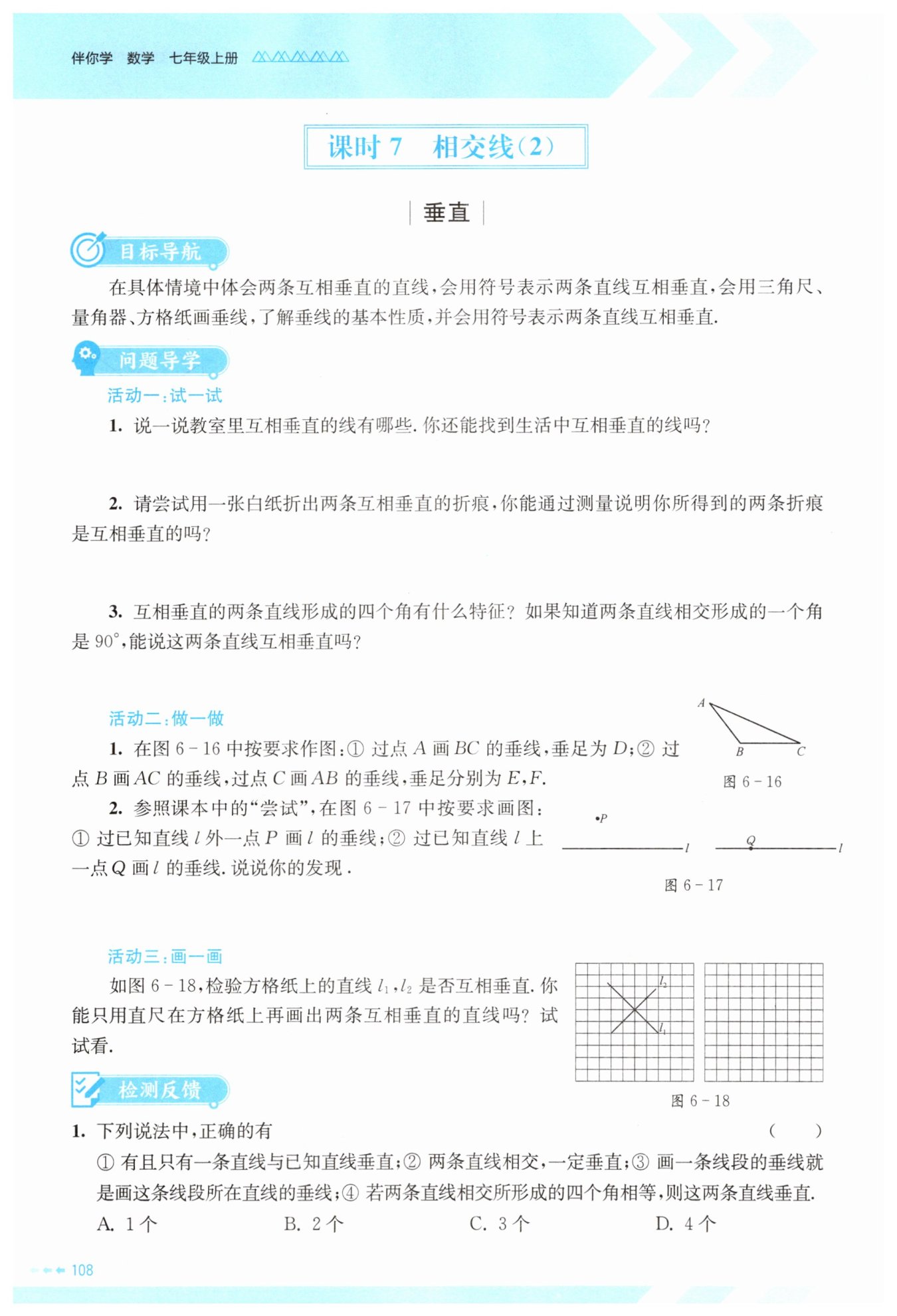 教室里互相垂直的線:黑板的相鄰兩邊、墻角的三條線等。生活中互相垂直的線: