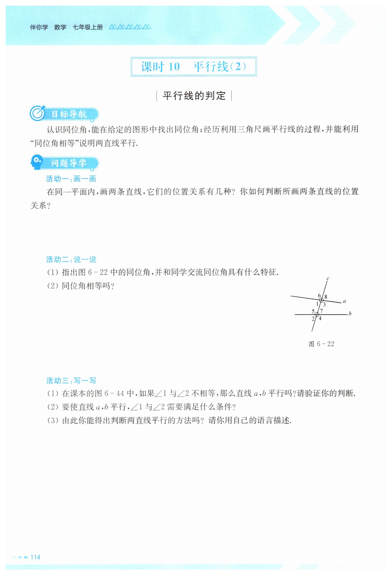 (1) 同位角:∠6與∠5,∠8與∠7,∠1與∠2,∠3與∠4。 特征:在截線的同旁,在被截兩直線的同一側(cè)。 (2) 同位角不一定相等,只有在兩條被截直線平行時,同位角才相等