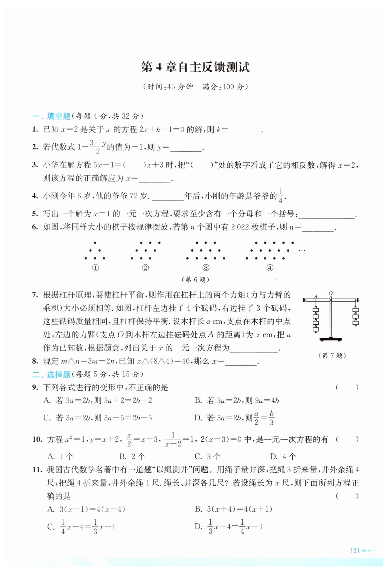 $y=x+2$:含有兩個未知數(shù),不是一元一次方程;