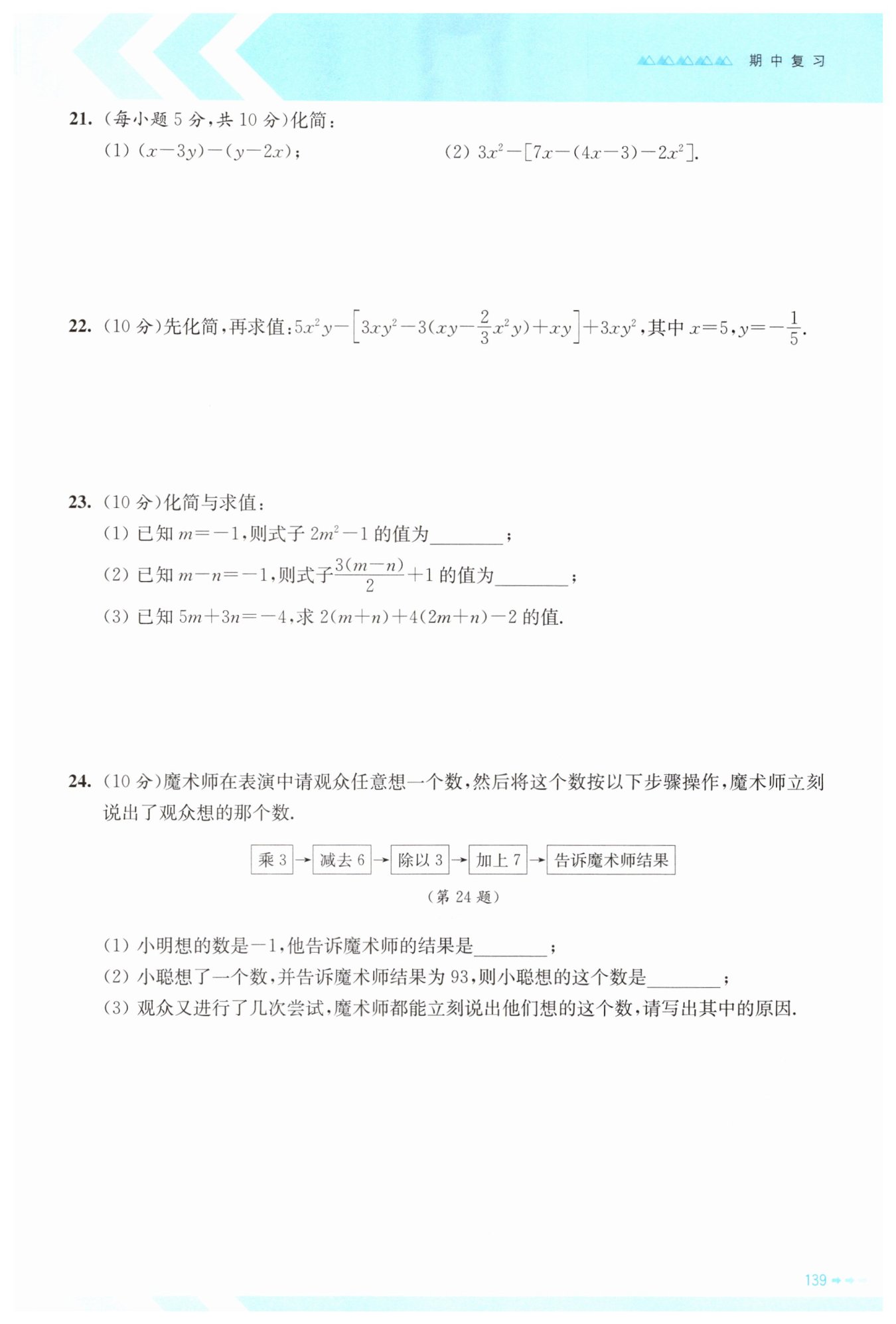 解:設(shè)觀眾想的數(shù)是x,則告訴魔術(shù)師的結(jié)果為(3x-6)÷3+7=x+5