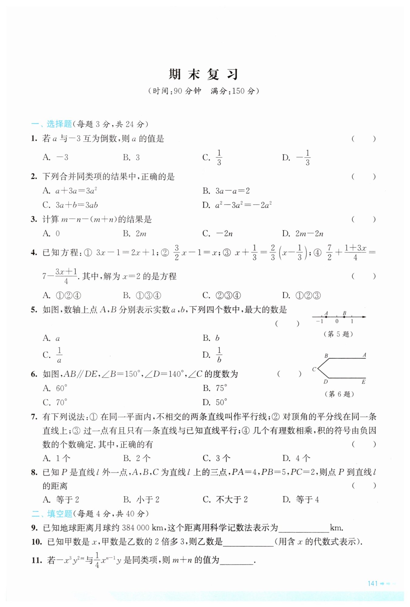 ④解方程$\frac{7}{2} + \frac{1 + 3x}{4} = 7 - \frac{3x + 1}{4}$,兩邊同乘4得$14 + 1 + 3x = 28 - (3x + 1)$,去括號得$15 + 3x = 28 - 3x - 1$,移項得$3x + 3x = 27 - 15$,即$6x = 12$,解得$x = 2$。