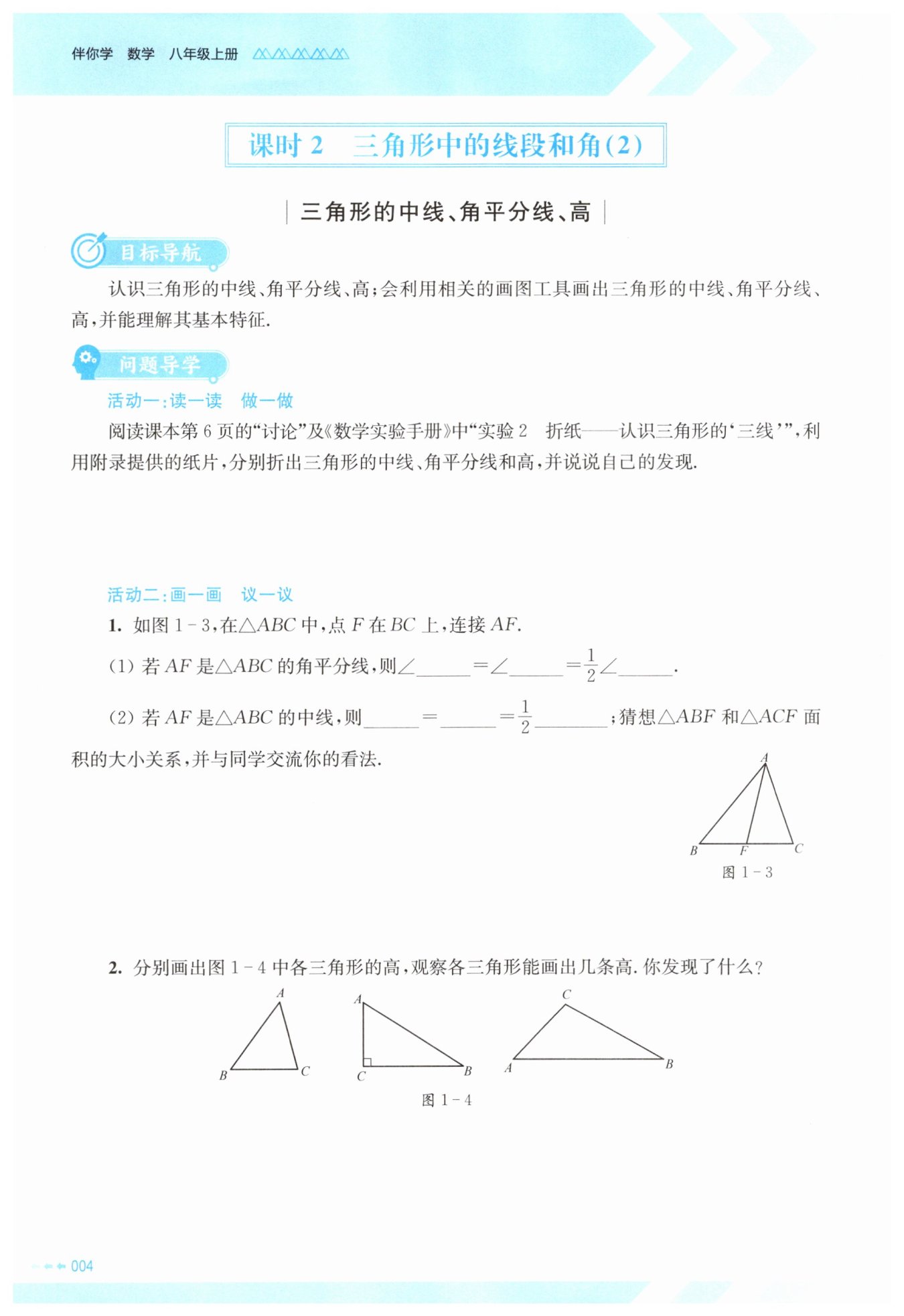 (2) 若$AF$是$\bigtriangleup ABC$的中線,根據(jù)中線的定義,它將$BC$邊平分為兩段相等的線段,即$BF = CF = \frac{1}{2}BC$。
