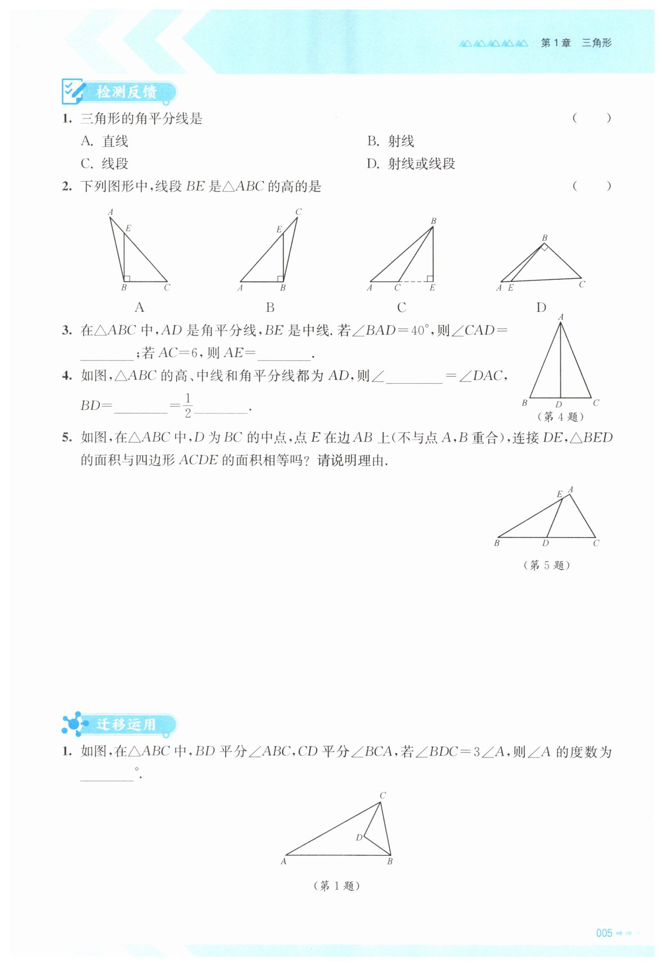 鈍角三角形有三條高,其中兩條高在三角形外部,一條高在三角形內(nèi)部。