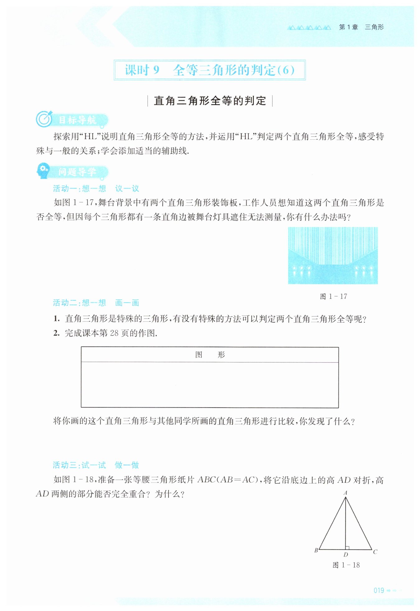 即測量出兩個(gè)三角形的斜邊長度以及未被遮住的直角邊長度,若對應(yīng)相等,則這兩個(gè)直角三角形全等。