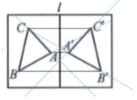 (1)圖略;(2)線段AA',BB',CC'均被折痕l垂直平分,驗(yàn)證:測量折痕l與各線段交點(diǎn)為中點(diǎn)且夾角90°;(3)成軸對稱的兩個圖形,對應(yīng)點(diǎn)的連線被對稱軸垂直平分;(4)延長后BA與B'A'、CA與C'A'的交點(diǎn)均在折痕l上;(5)△ABC與△A'B'C'關(guān)于折痕l成軸對稱(或全等且成軸對稱)。