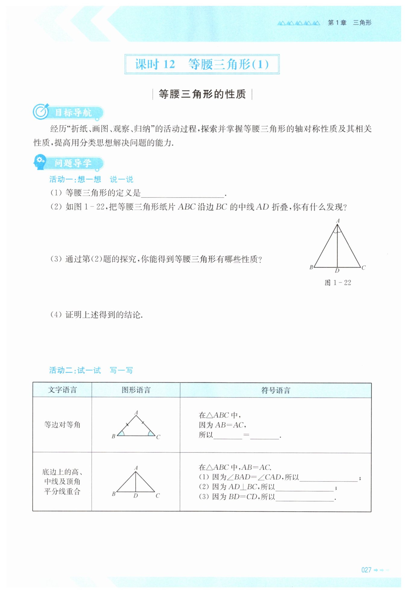 (1)等腰三角形的定義是有兩邊相等的三角形叫做等腰三角形。
