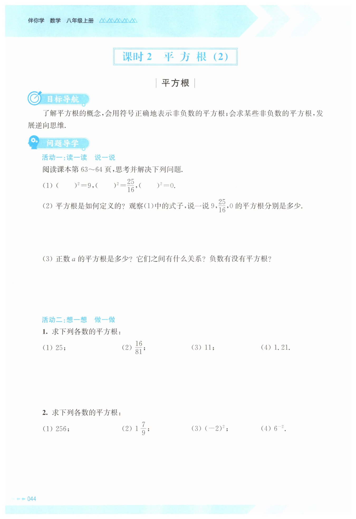 平方根的定義:若一個(gè)數(shù)$x$的平方等于$a,$即$x^2 = a,$則$x$叫做$a$的平方根。