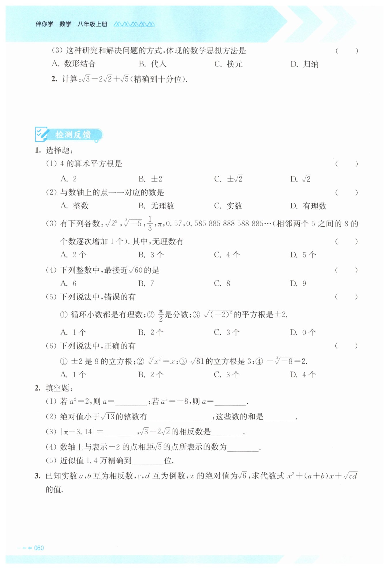 (1) 對于 $a^2 = 2$,根據(jù)平方根的定義,若一個數(shù)的平方等于2,則這個數(shù)是2的平方根,考慮到平方根有正負之分,所以 $a = \pm \sqrt{2}$。