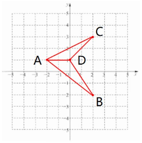 連接 AD ,將四邊形 ABDC 分為 △ABD 和 △ADC $S_{△ADC} = \frac{1}{2}× AD× \text{高} = \frac{1}{2}× 2× 2 = 2 $ $S_{△ABD} = \frac{1}{2}× AD× \text{高} = \frac{1}{2}× 2× 3 = 3 $ $S_{四邊形ABDC} = S_{△ABD} + S_{△ADC} = 3 + 2 = 5 $