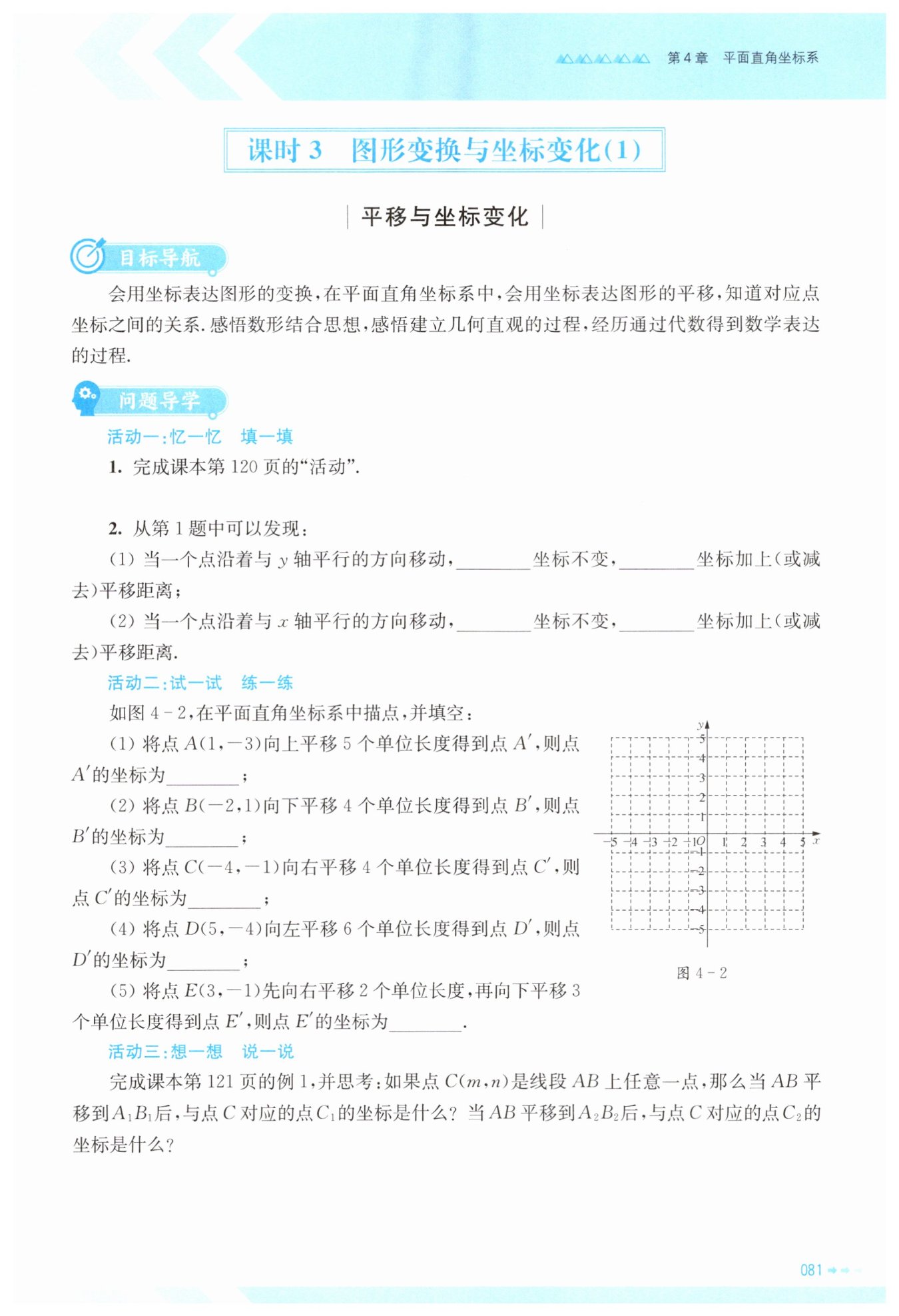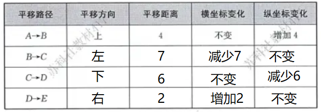 【解析】: 1. 當一個點沿著與y軸平行的方向移動時,其橫坐標(x坐標)不會發(fā)生變化,而縱坐標(y坐標)會根據移動的方向和距離增加或減少。 2. 當一個點沿著與x軸平行的方向移動時,其縱坐標(y坐標)保持不變,而橫坐標(x坐標)會根據移動的方向和距離增加或減少。