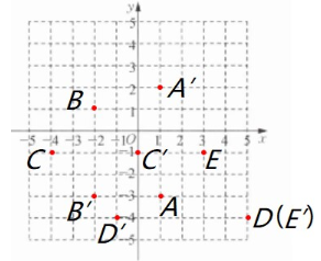 【解析】: (1) 點$A(1, -3)$向上平移$5$個單位長度,橫坐標不變,縱坐標加$5$,即$A'$的坐標為$(1, -3 + 5)=(1, 2)$。 (2) 點$B(-2, 1)$向下平移$4$個單位長度,橫坐標不變,縱坐標減$4$,即$B'$的坐標為$(-2, 1 - 4)=(-2, -3)$。 (3) 點$C(-4, -1)$向右平移$4$個單位長度,縱坐標不變,橫坐標加$4$,即$C'$的坐標為$(-4 + 4, -1)=(0, -1)$。 (4) 點$D(5, -4)$向左平移$6$個單位長度,縱坐標不變,橫坐標減$6$,即$D'$的坐標為$(5 - 6, -4)=(-1, -4)$。 (5) 點$E(3, -1)$先向右平移$2$個單位長度,縱坐標不變,橫坐標加$2$,得到$(3 + 2, -1)=(5, -1)$;再向下平移$3$個單位長度,橫坐標不變,縱坐標減$3$,得到$E'$的坐標為$(5, -1 - 3)=(5, -4)$。