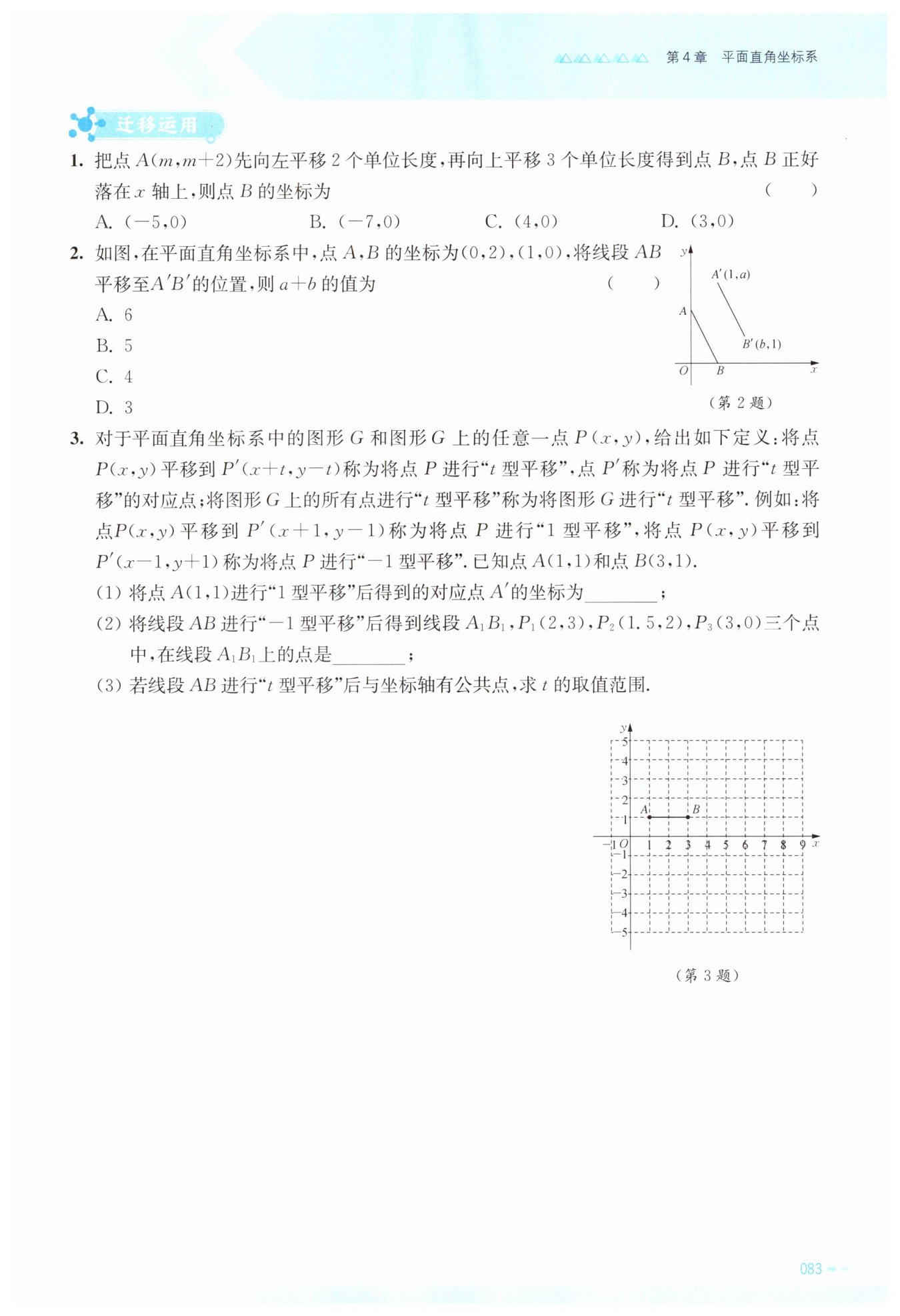 $B(3,1)$的對應點為$B_2(3 + t,1 - t)$。