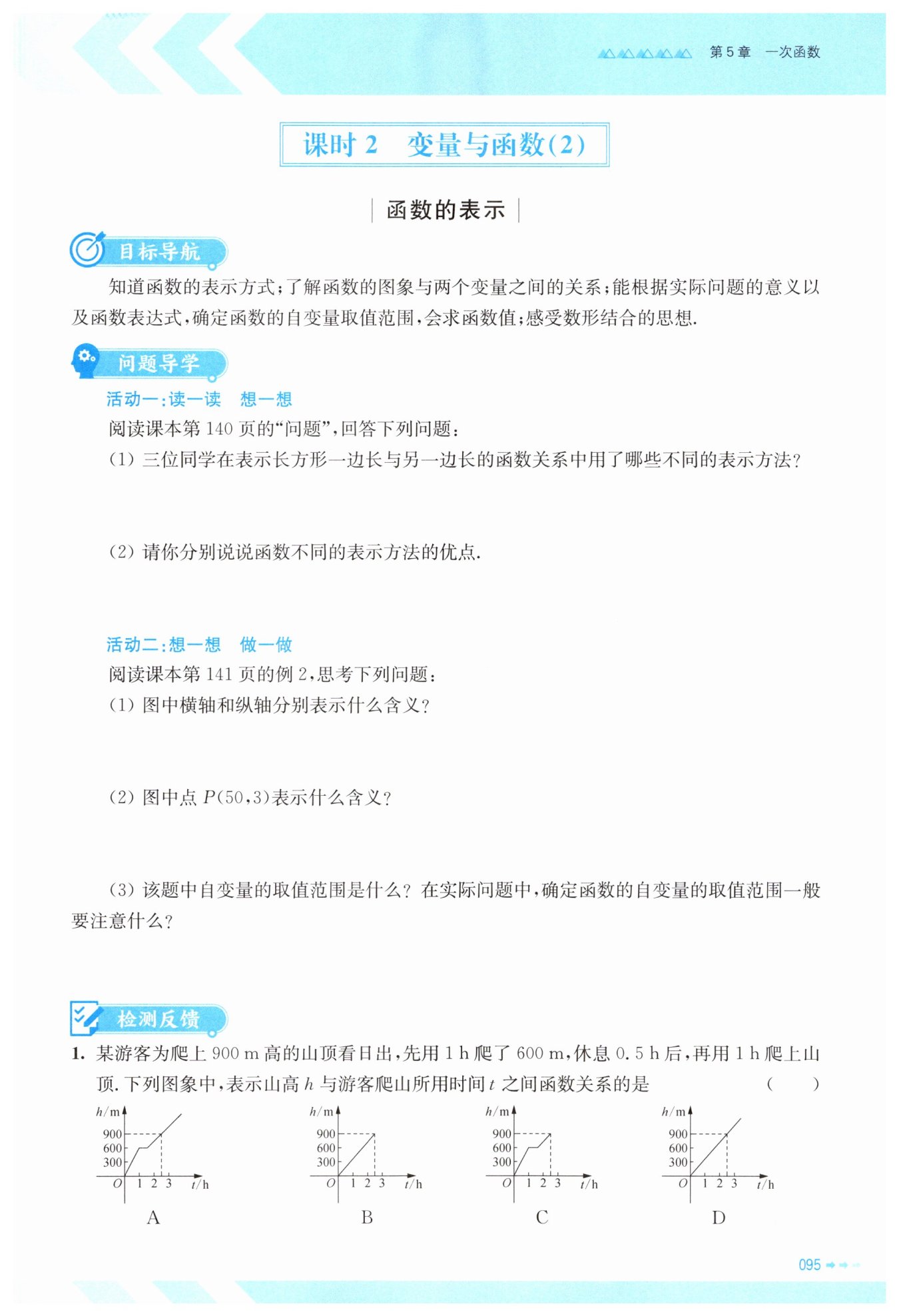 (1)根據(jù)課時內容,橫軸通常表示自變量,縱軸表示因變量。需要查看課本第141頁的例2具體圖示來確認,但一般橫軸是時間或某個獨立變量,縱軸是依賴于橫軸的變量。