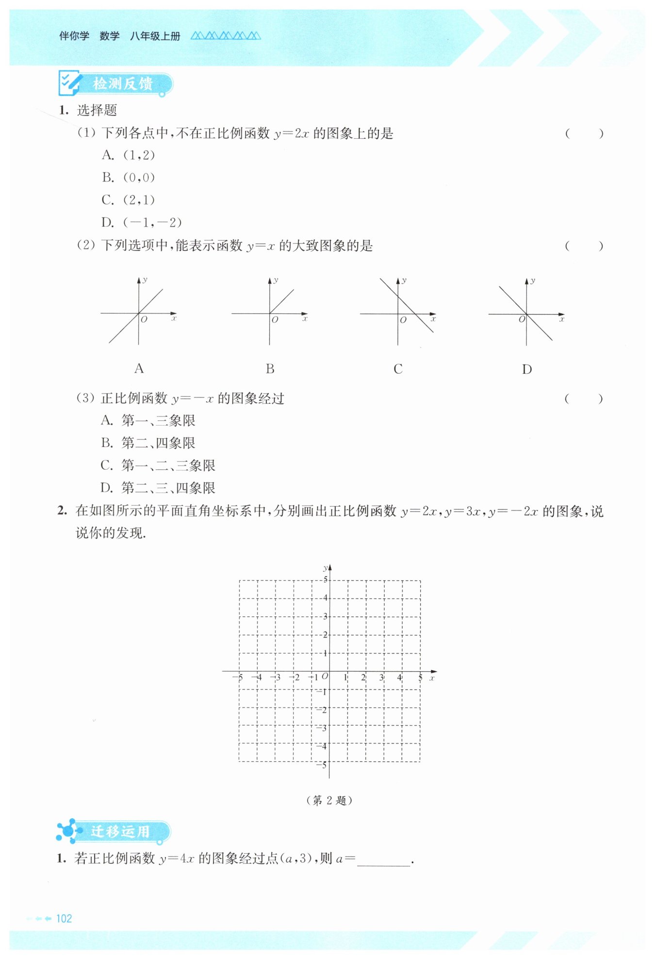 (3) 正比例函數(shù)$y=-x$,斜率$k=-1\lt0$,圖象經(jīng)過第二、四象限。