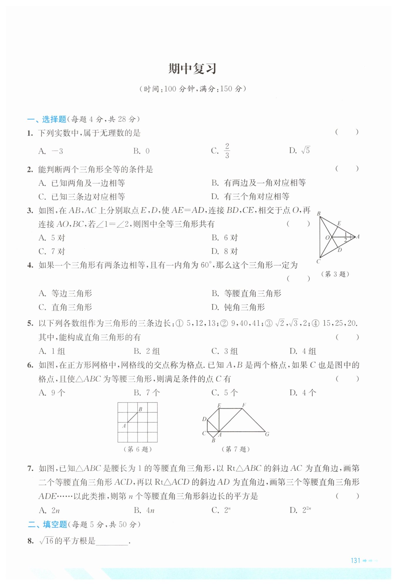 6. △ABE≌△ACD(SSS):AB=AC,AE=AD,由2得BE=CD。