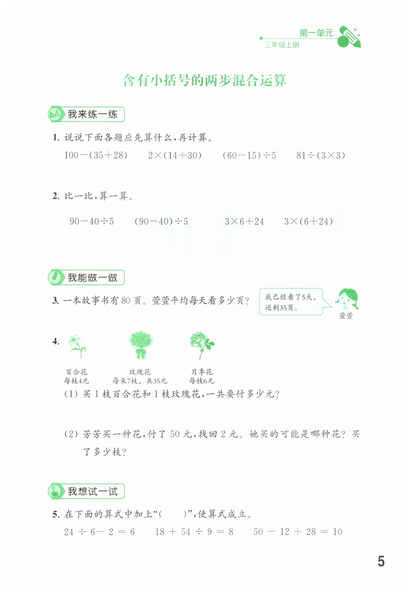 總頁數是80頁,還剩35頁,那么5天看的頁數為$80 - 35 = 45$(頁)。