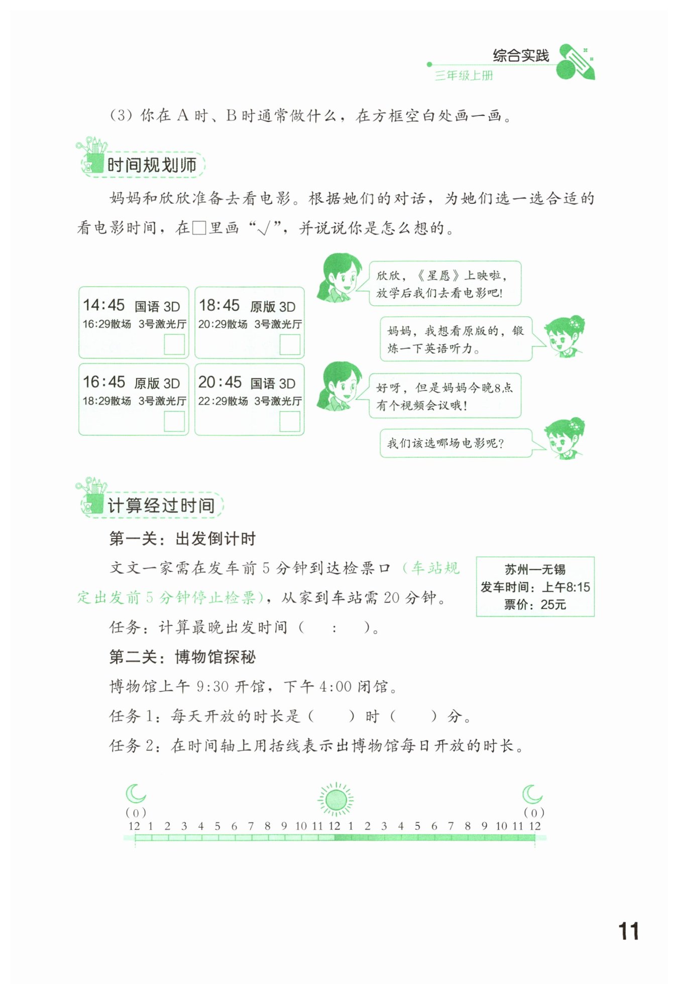 (3) 例:A處畫(huà)起床圖,B處畫(huà)睡覺(jué)圖