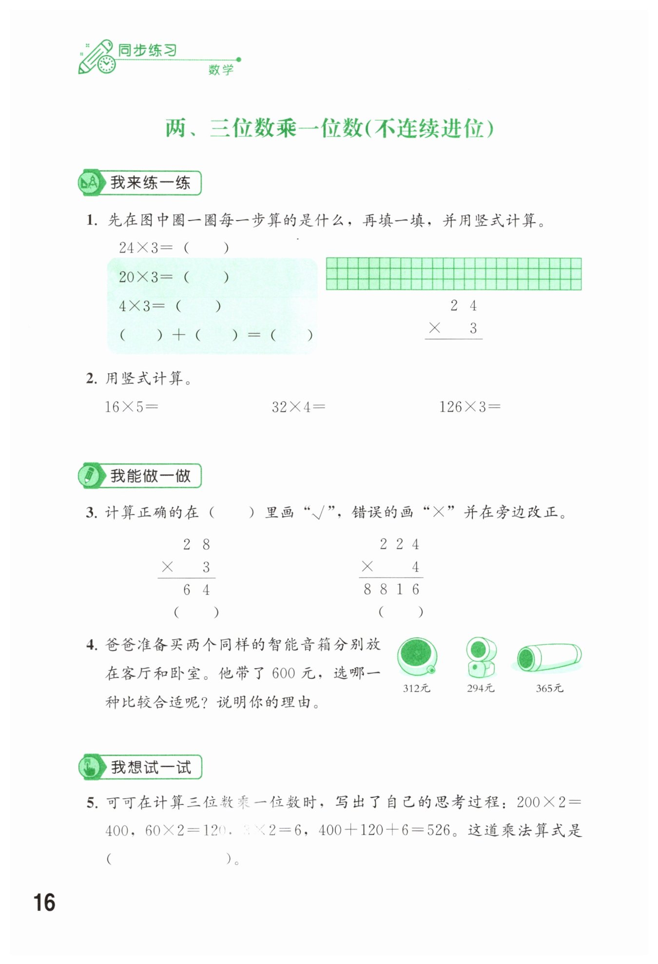 第一個算式:個位8×3=24,應(yīng)向十位進(jìn)2,十位2×3=6,6加進(jìn)位2得8,結(jié)果應(yīng)為84,原計算錯誤。第二個算式:三位數(shù)乘一位數(shù),積的位數(shù)錯誤,224×4,個位4×4=16,十位2×4=8加1=9,百位2×4=8,結(jié)果應(yīng)為896,原計算錯誤。