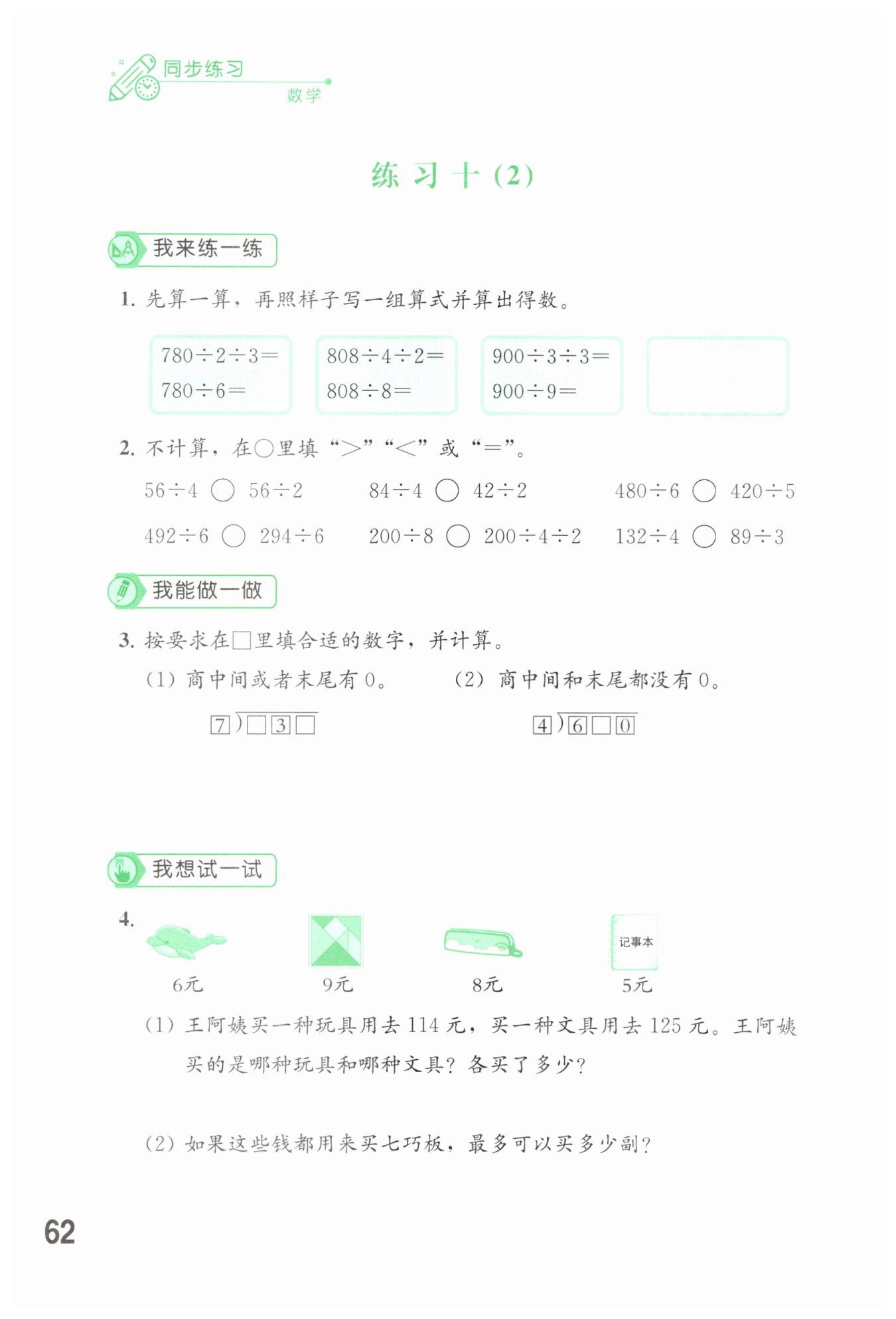 $130$,$101$,$100$;$130$,$101$,$100$;例子(答案不唯一)$660 ÷ 4 ÷ 3=55$,$660 ÷ 12=55$。