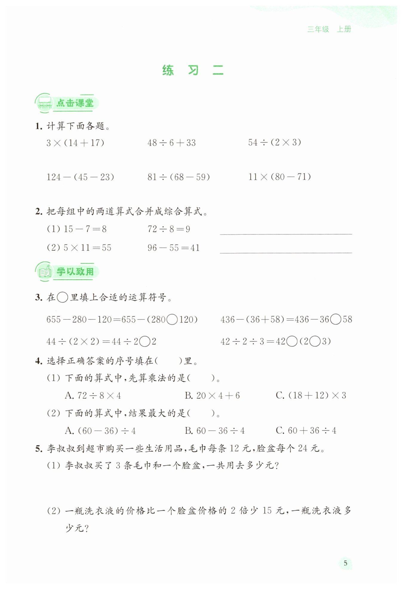 所以在$655 - 280 - 120 = 655 - (280?120)$中,$?$里應(yīng)填$+$。