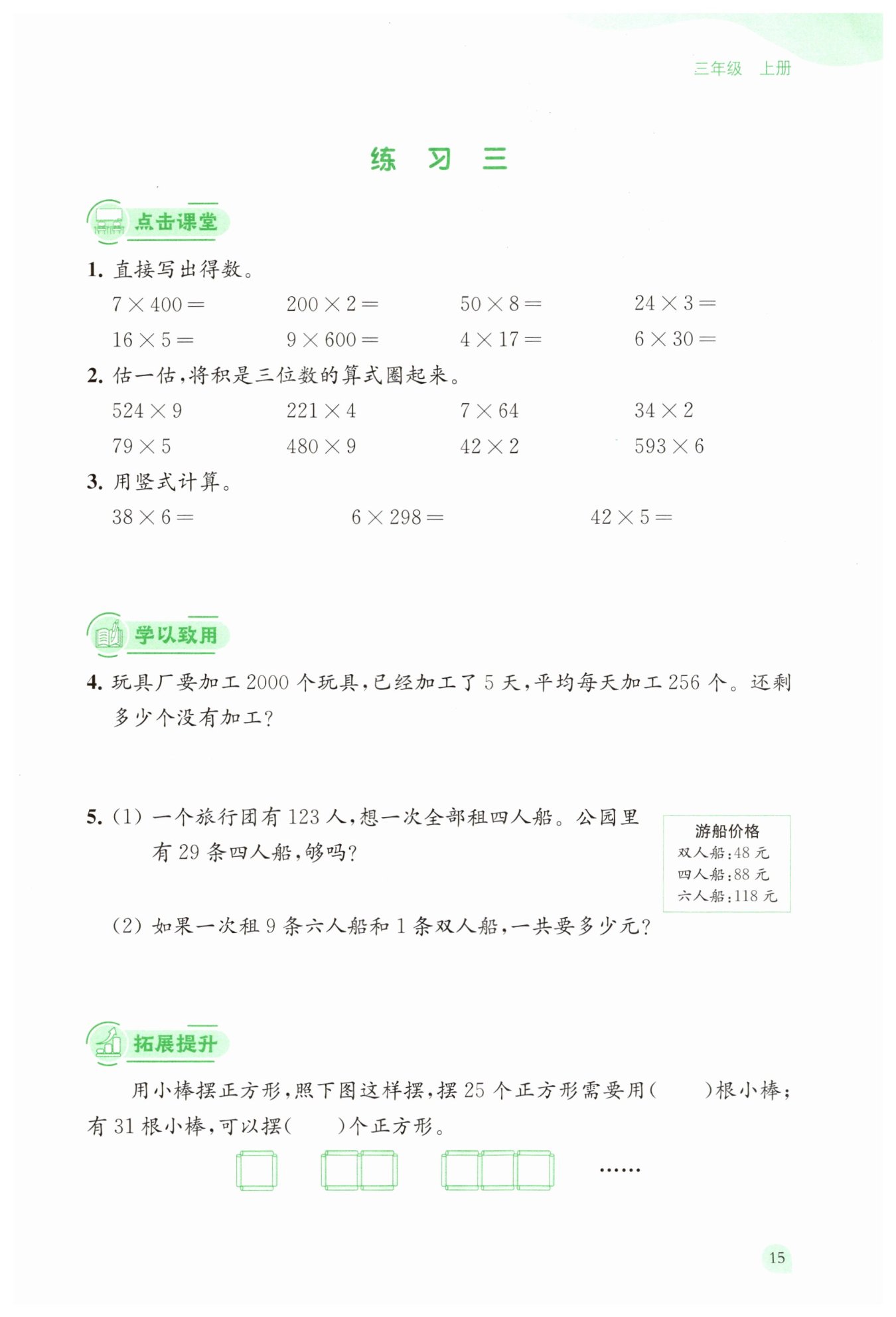 $7×64$:$7×60=420$,$7×4=28$,$420+28=448$(三位數)