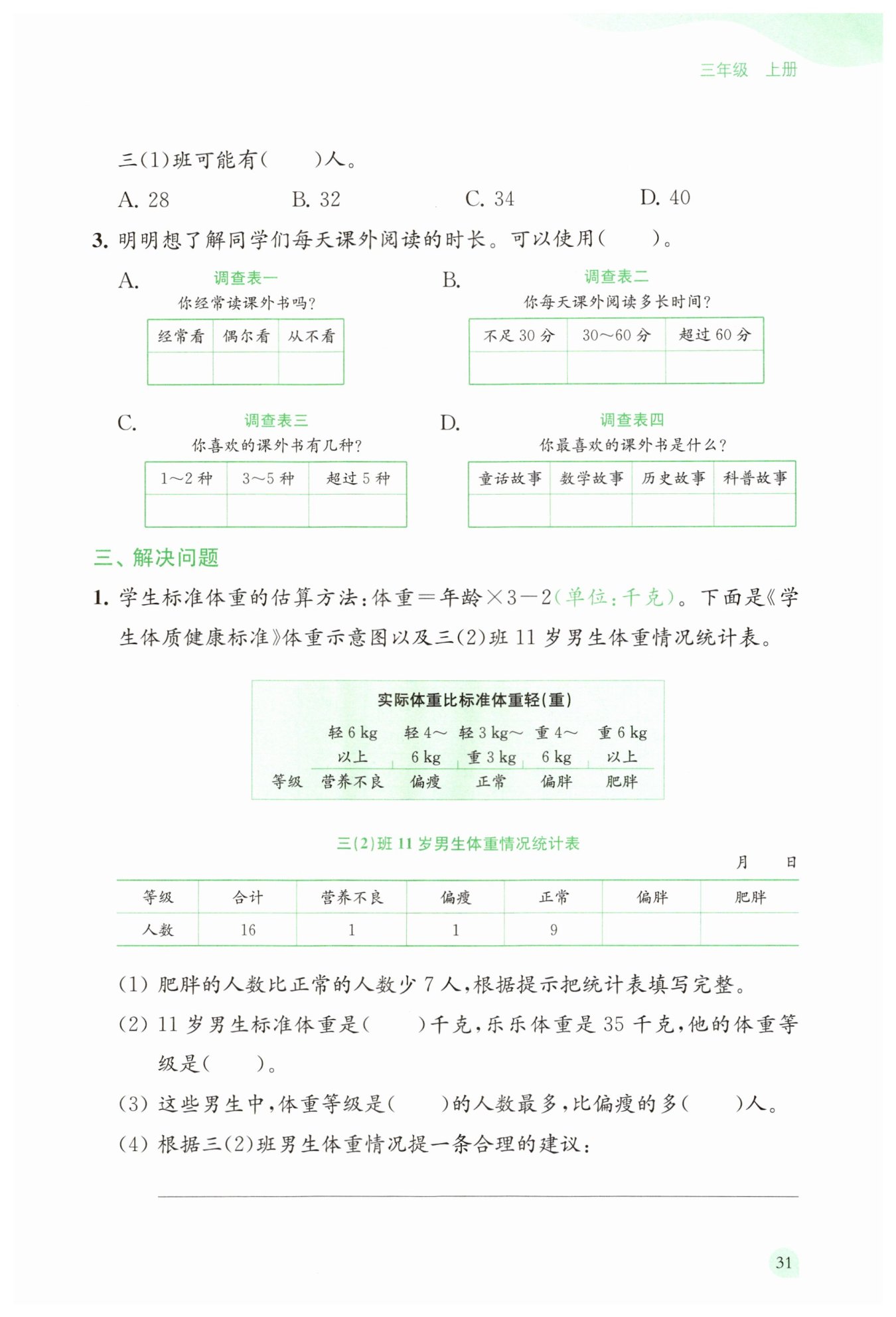 (1)日期略 3 2 (2)31 偏胖 (3)正常 8 建議合理即可