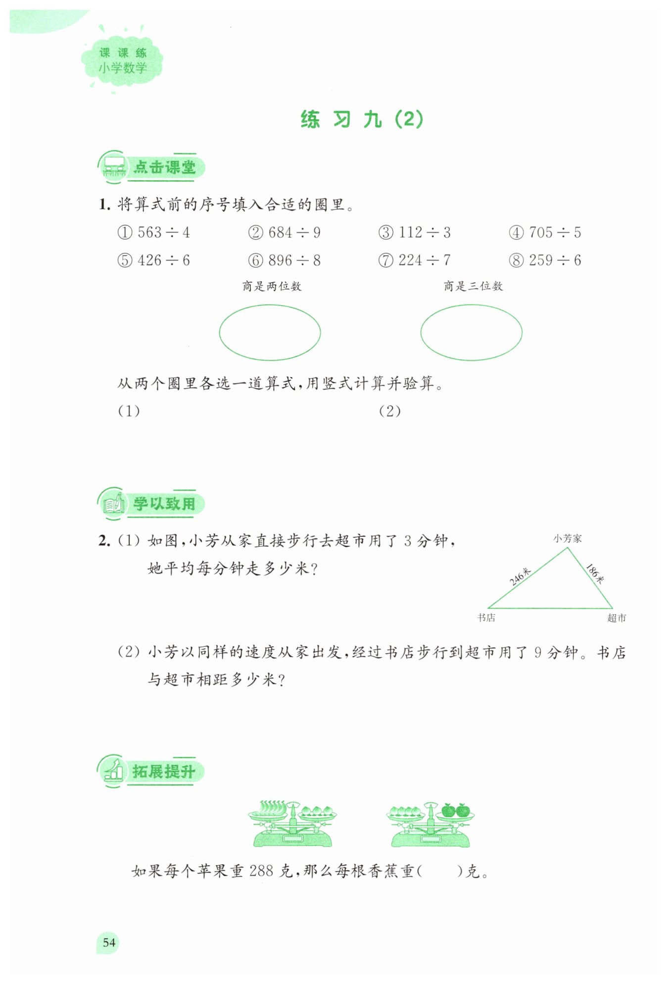 總路程為從家到超市的距離186米,時(shí)間為3分鐘,根據(jù)速度公式:速度$=\frac{路程}{時(shí)間}=\frac{186}{3}=62$(米/分鐘)。答:她平均每分鐘走62米。
