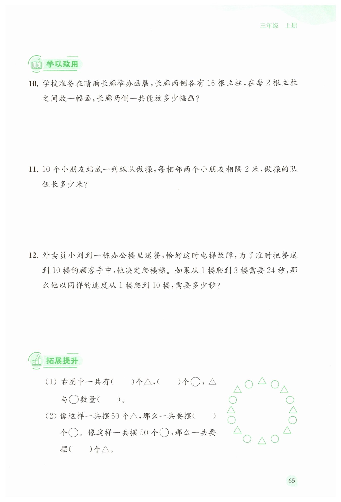 從1樓到10樓,爬的樓梯間隔數(shù):10-1=9(個)