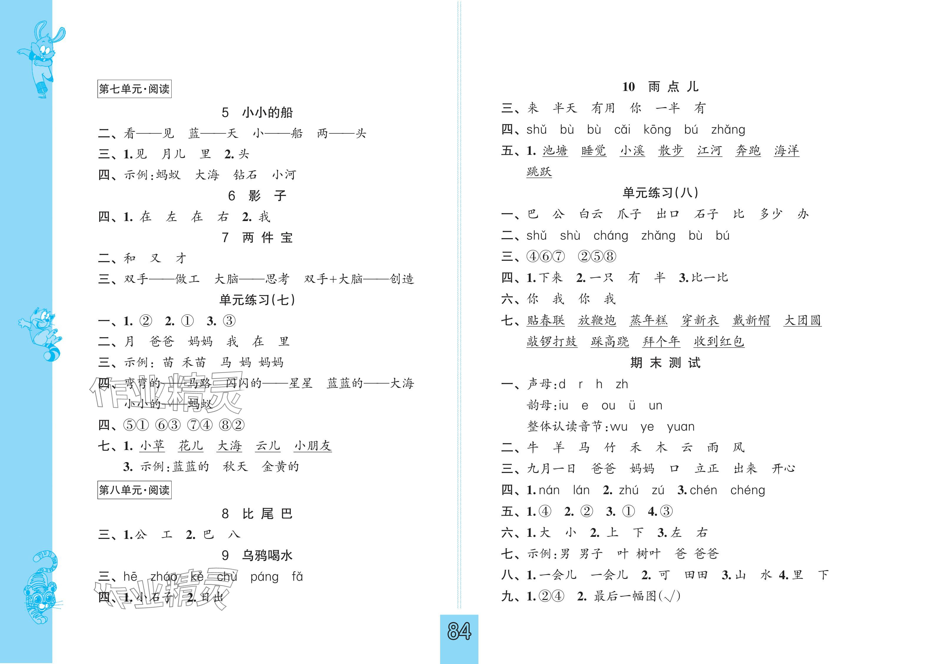 零五網(wǎng) 全部參考答案 練習(xí)與測試答案 2025年練習(xí)與測試一年級語文上冊人教版參考答案第4頁