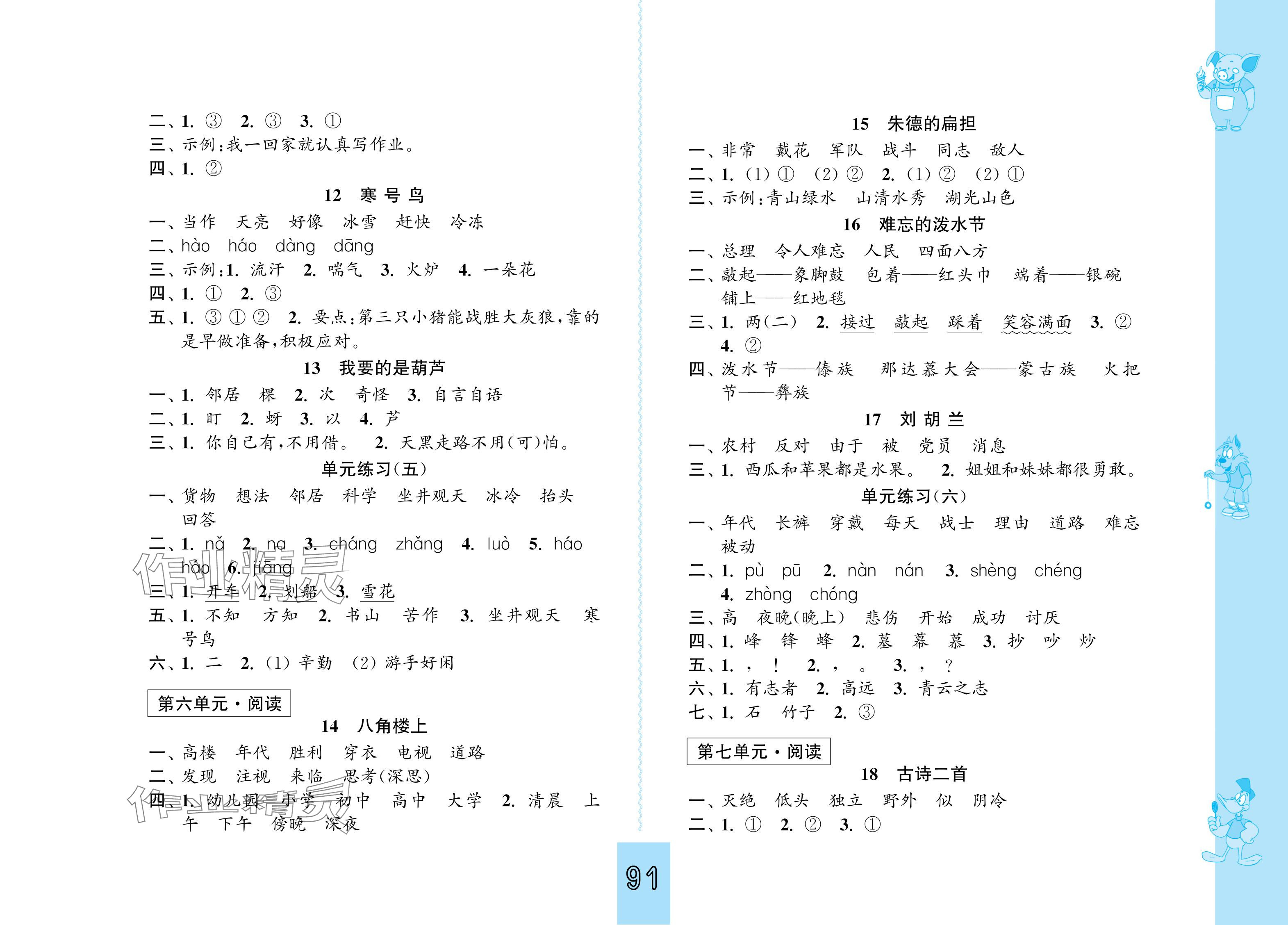 零五網(wǎng) 全部參考答案 練習(xí)與測試答案 2025年練習(xí)與測試二年級語文上冊人教版參考答案第3頁
