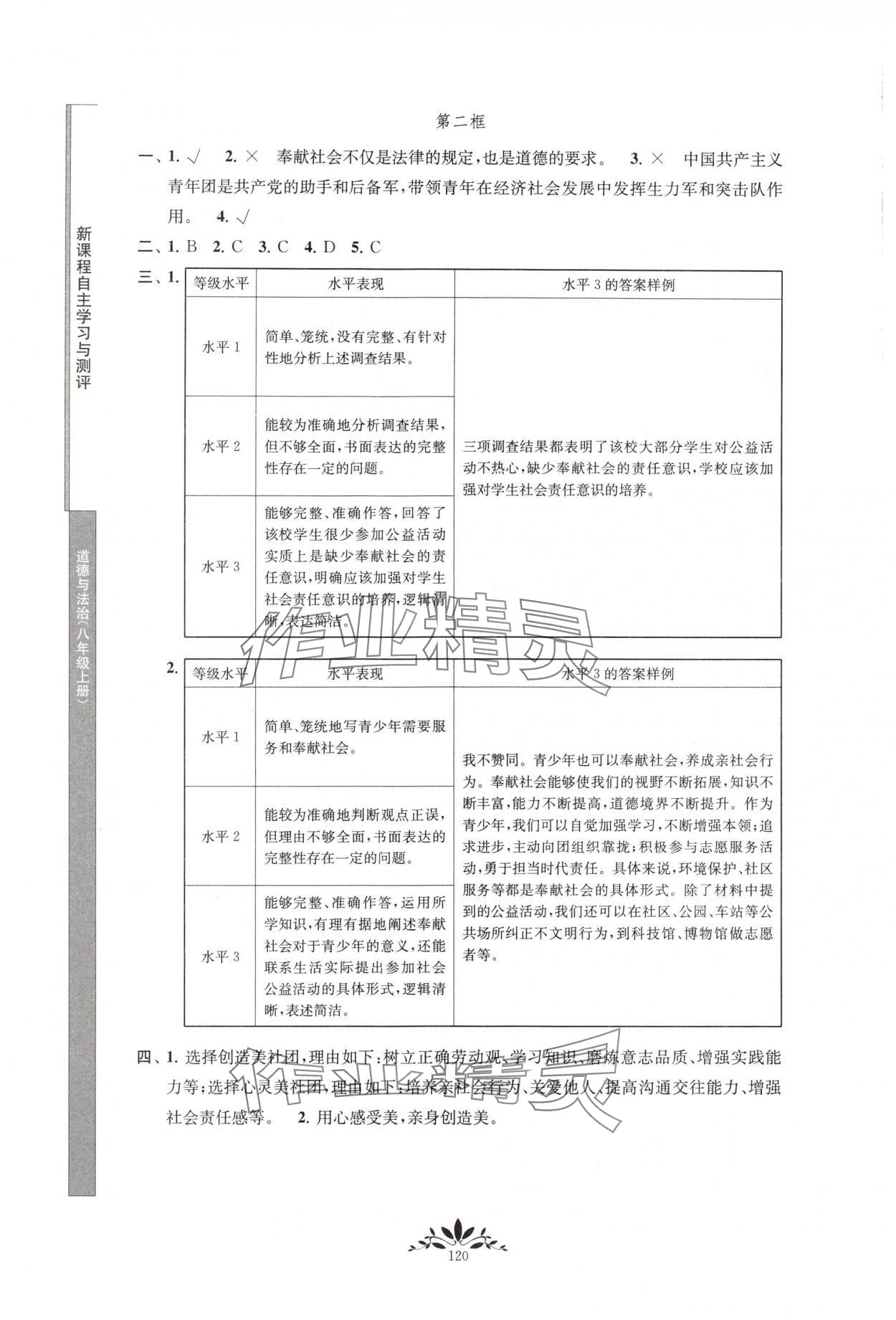 零五網 全部參考答案 新課程自主學習與測評答案 2025年新課程自主學習與測評八年級道德與法治上冊人教版第16頁