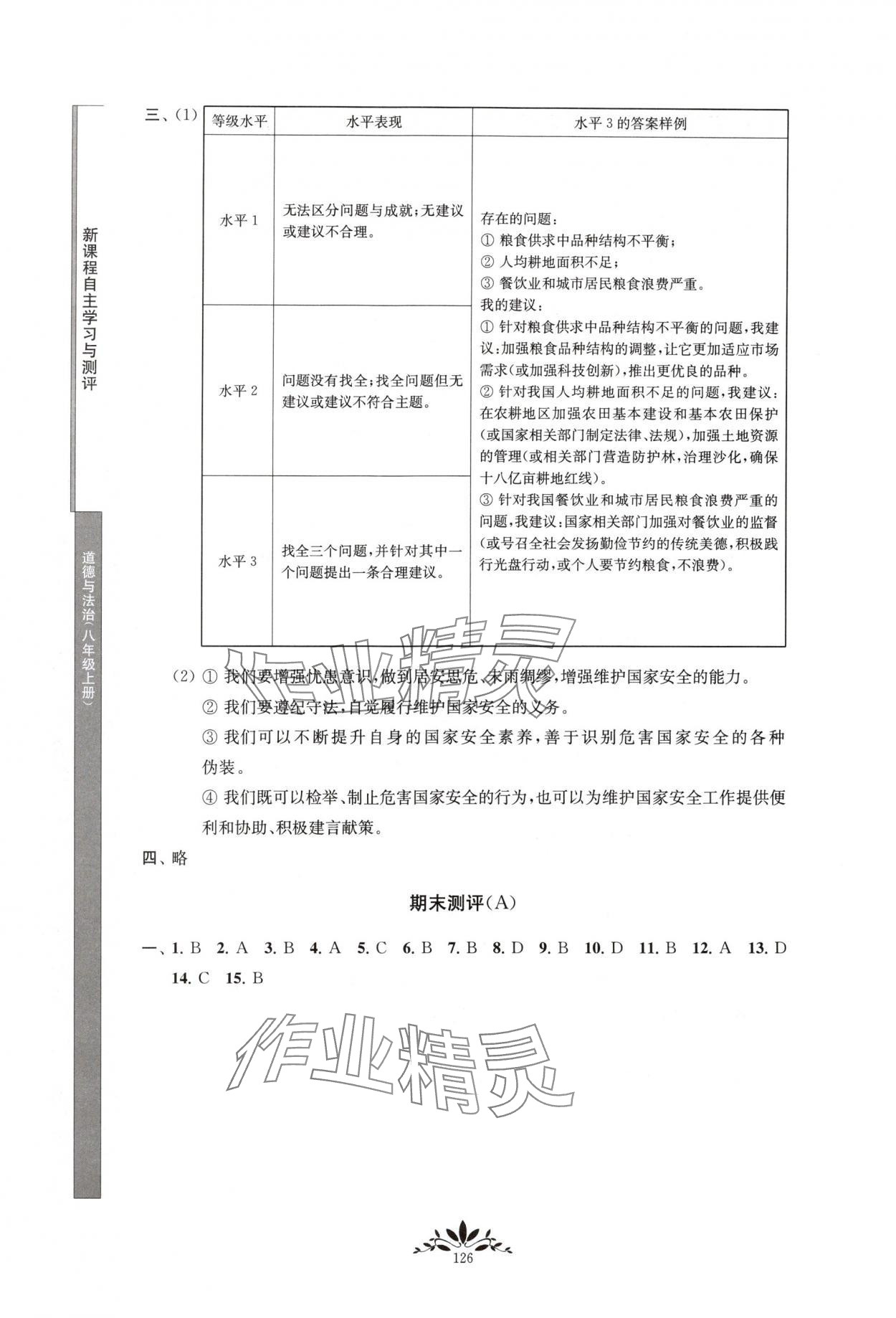 零五網 全部參考答案 新課程自主學習與測評答案 2025年新課程自主學習與測評八年級道德與法治上冊人教版第22頁