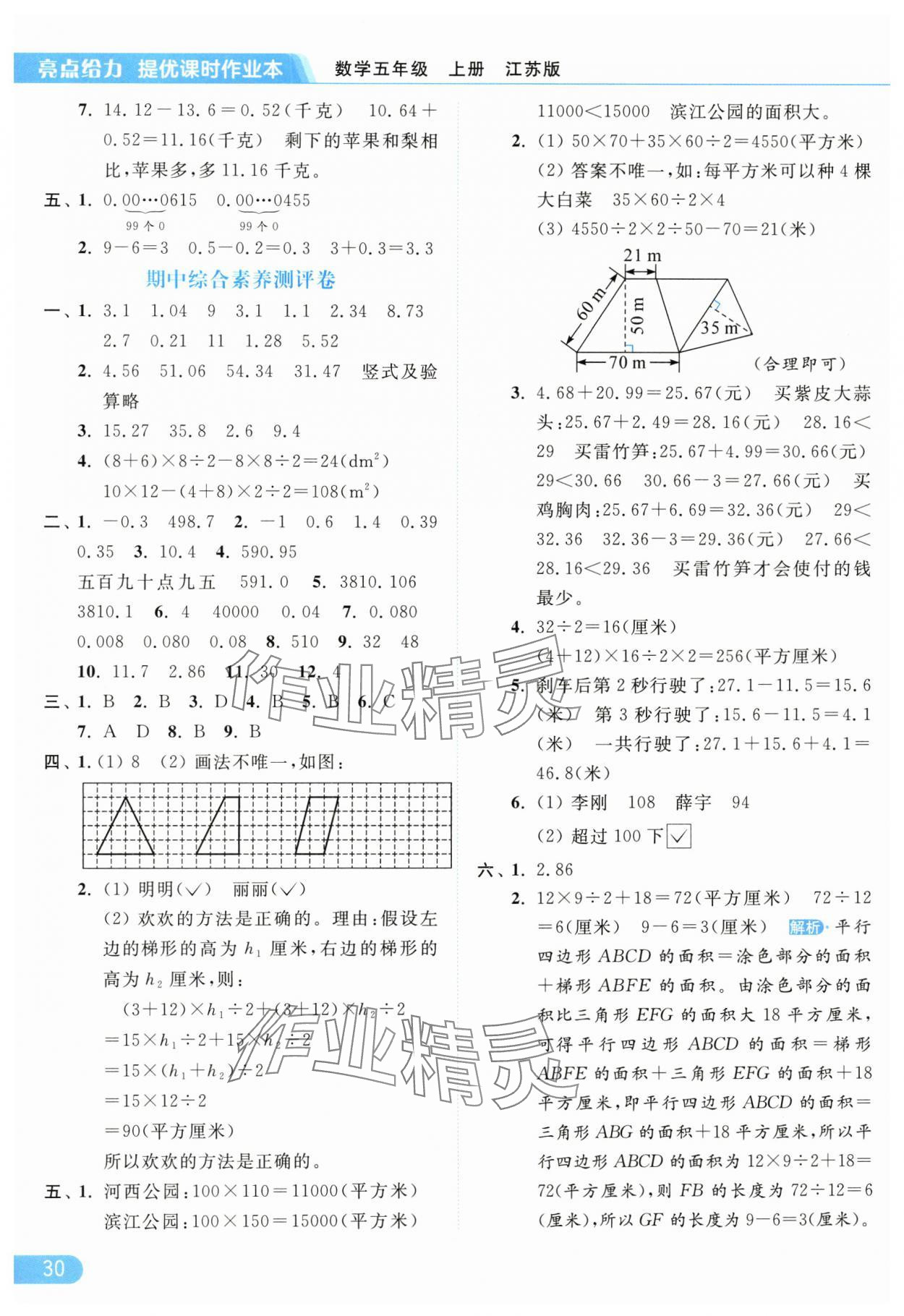 零五網(wǎng) 全部參考答案 亮點(diǎn)給力提優(yōu)課時(shí)作業(yè)本答案 2025年亮點(diǎn)給力提優(yōu)課時(shí)作業(yè)本五年級(jí)數(shù)學(xué)上冊(cè)江蘇版參考答案第30頁(yè)
