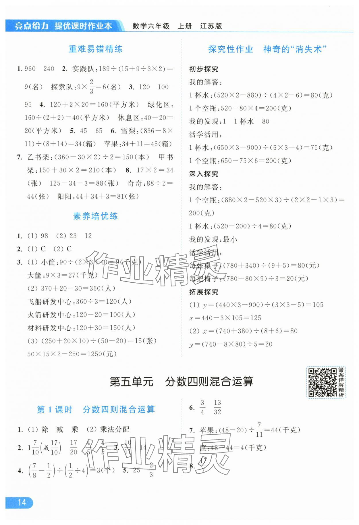 零五網(wǎng) 全部參考答案 亮點給力提優(yōu)課時作業(yè)本答案 2025年亮點給力提優(yōu)課時作業(yè)本六年級數(shù)學上冊江蘇版參考答案第14頁