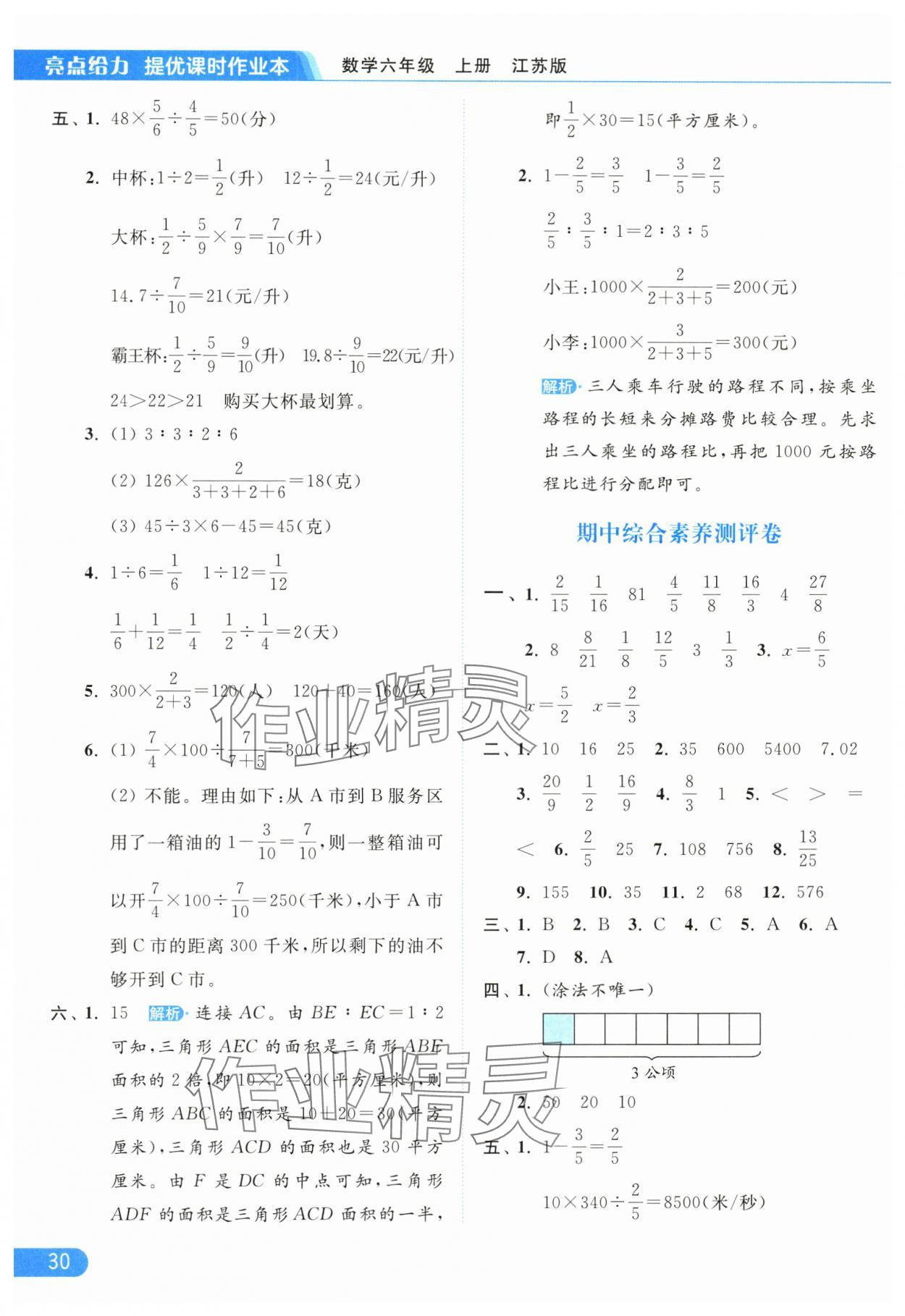 零五網(wǎng) 全部參考答案 亮點(diǎn)給力提優(yōu)課時(shí)作業(yè)本答案 2025年亮點(diǎn)給力提優(yōu)課時(shí)作業(yè)本六年級數(shù)學(xué)上冊江蘇版參考答案第30頁