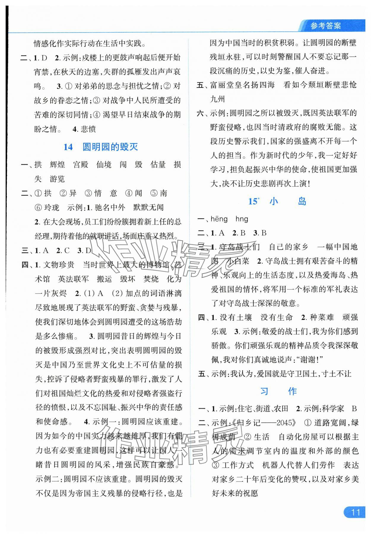 零五網(wǎng) 全部參考答案 亮點(diǎn)給力提優(yōu)課時(shí)作業(yè)本答案 2025年亮點(diǎn)給力提優(yōu)課時(shí)作業(yè)本五年級(jí)語(yǔ)文上冊(cè)統(tǒng)編版參考答案第11頁(yè)