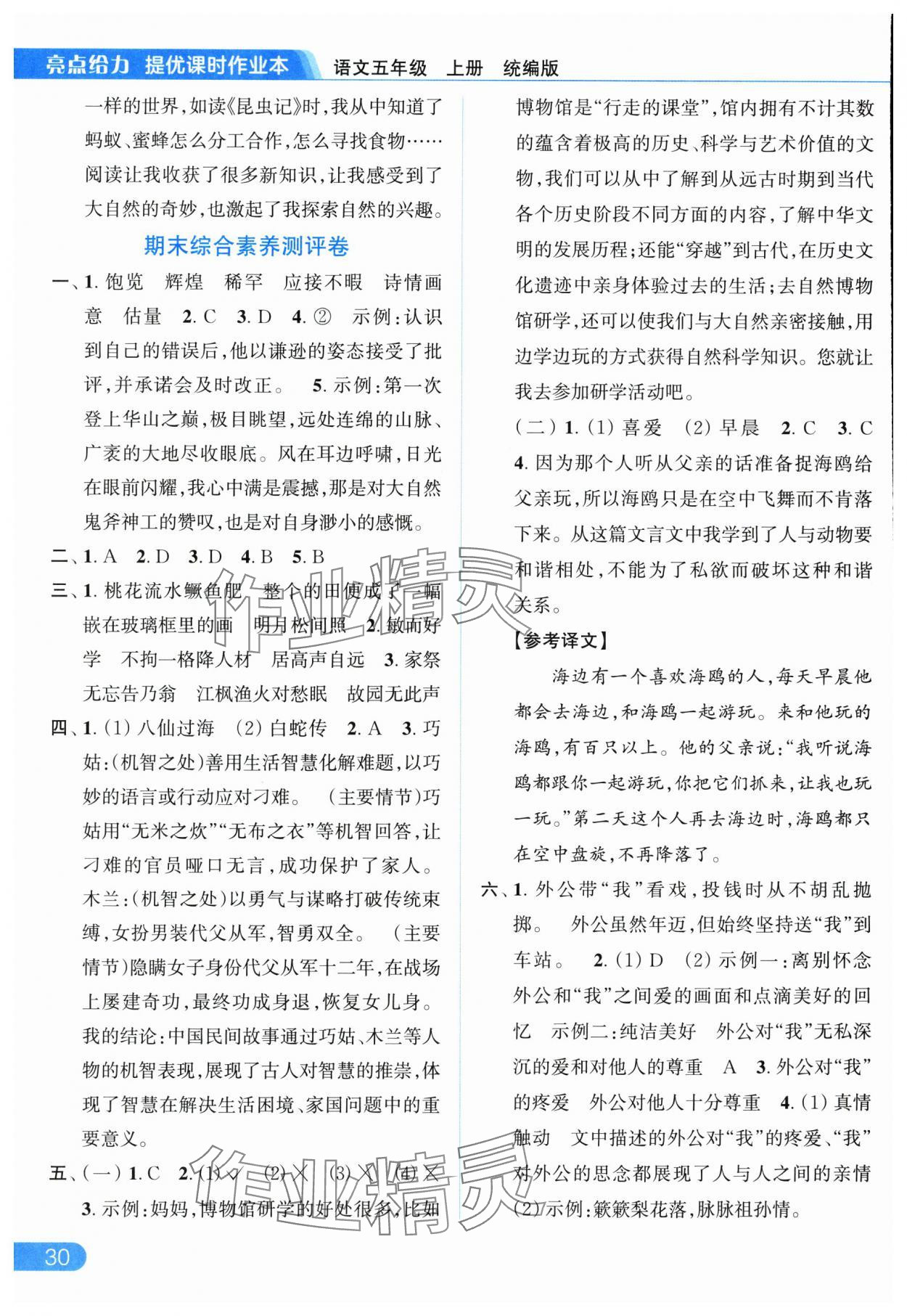 零五網(wǎng) 全部參考答案 亮點給力提優(yōu)課時作業(yè)本答案 2025年亮點給力提優(yōu)課時作業(yè)本五年級語文上冊統(tǒng)編版參考答案第30頁