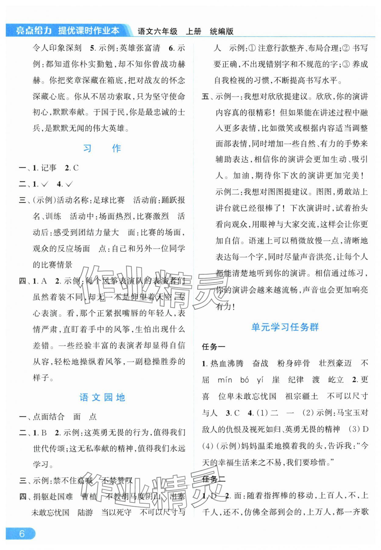 零五網(wǎng) 全部參考答案 亮點給力提優(yōu)課時作業(yè)本答案 2025年亮點給力提優(yōu)課時作業(yè)本六年級語文上冊人教版參考答案第6頁