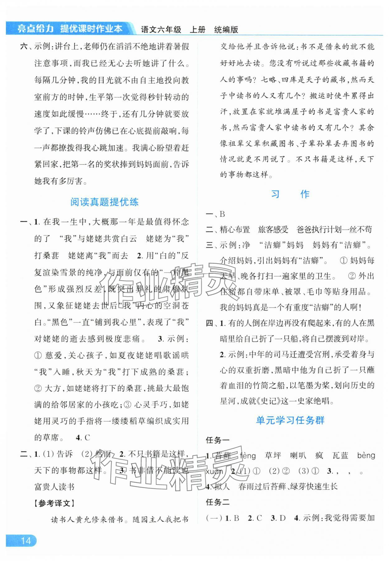 零五網(wǎng) 全部參考答案 亮點(diǎn)給力提優(yōu)課時(shí)作業(yè)本答案 2025年亮點(diǎn)給力提優(yōu)課時(shí)作業(yè)本六年級(jí)語文上冊(cè)人教版參考答案第14頁