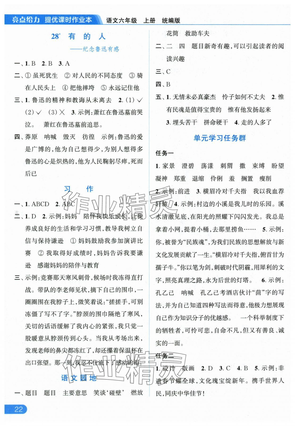 零五網(wǎng) 全部參考答案 亮點給力提優(yōu)課時作業(yè)本答案 2025年亮點給力提優(yōu)課時作業(yè)本六年級語文上冊人教版參考答案第22頁