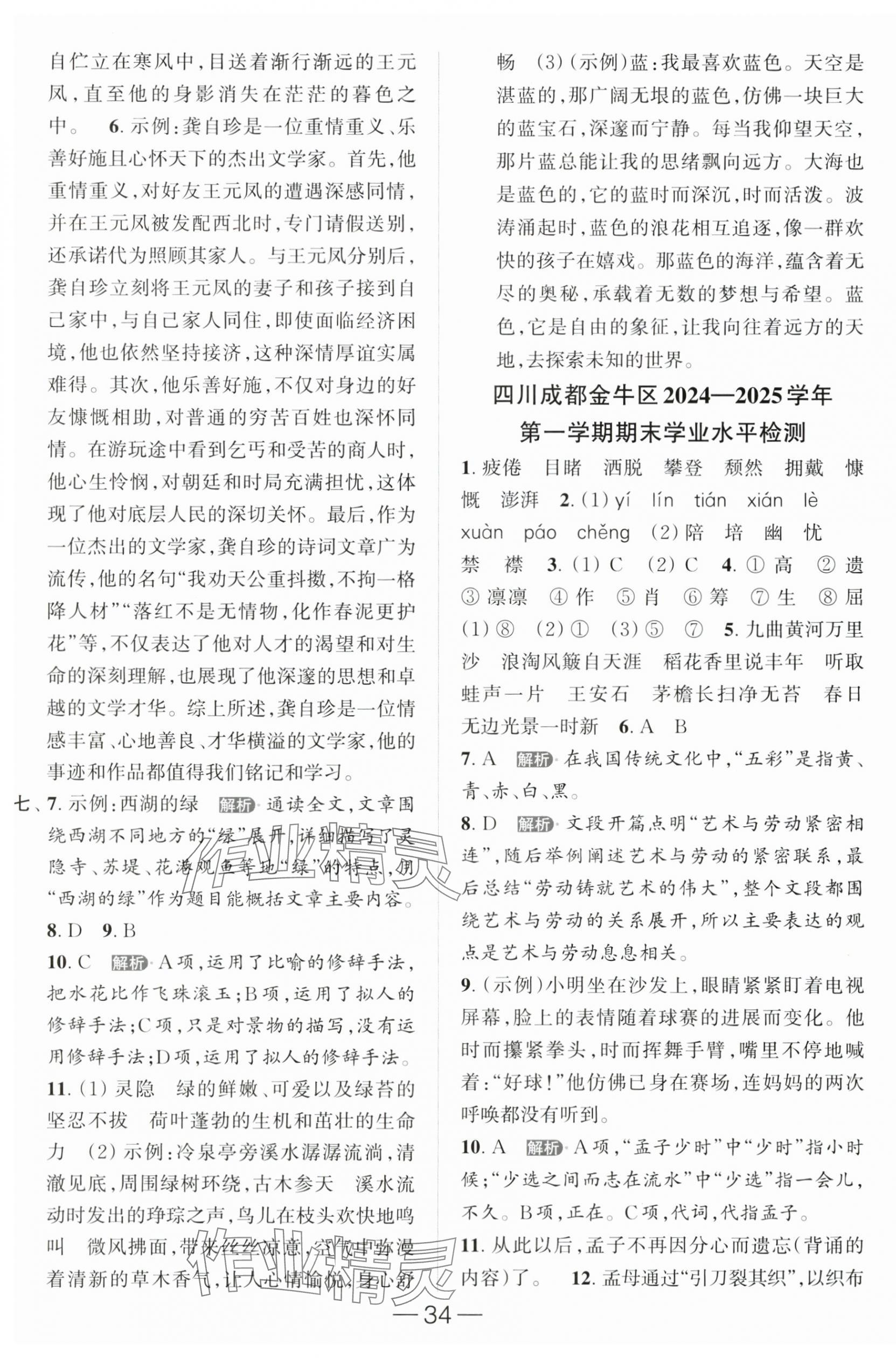 零五網(wǎng) 全部參考答案 亮點給力提優(yōu)課時作業(yè)本答案 2025年亮點給力提優(yōu)課時作業(yè)本六年級語文上冊人教版第34頁