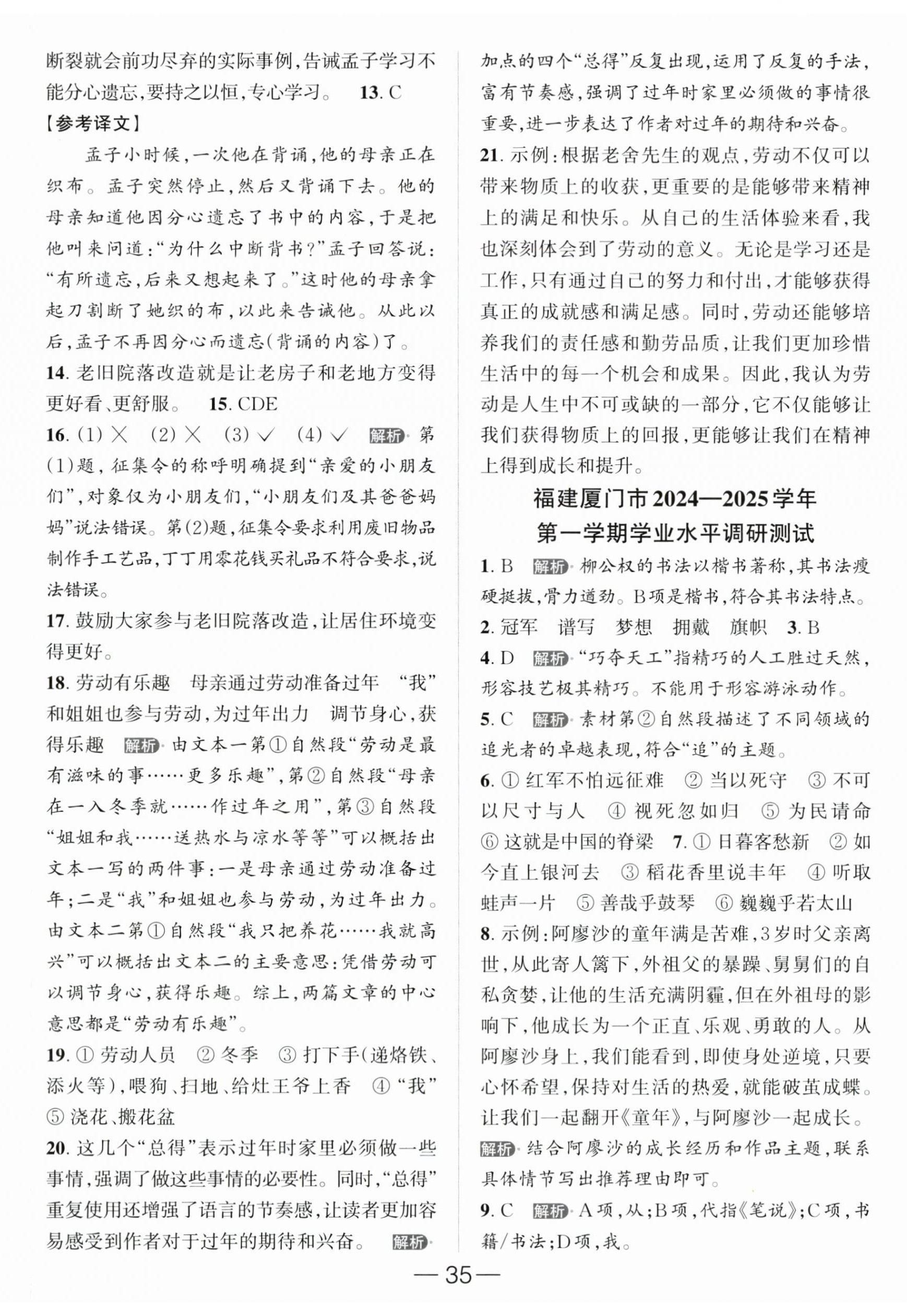 零五網(wǎng) 全部參考答案 亮點給力提優(yōu)課時作業(yè)本答案 2025年亮點給力提優(yōu)課時作業(yè)本六年級語文上冊人教版第35頁