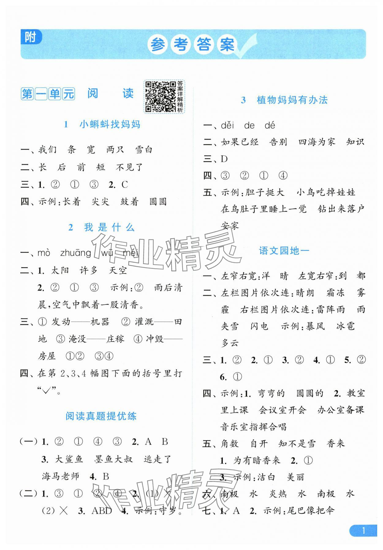 零五網(wǎng) 全部參考答案 亮點給力提優(yōu)課時作業(yè)本答案 2025年亮點給力提優(yōu)課時作業(yè)本二年級語文上冊統(tǒng)編版參考答案第1頁