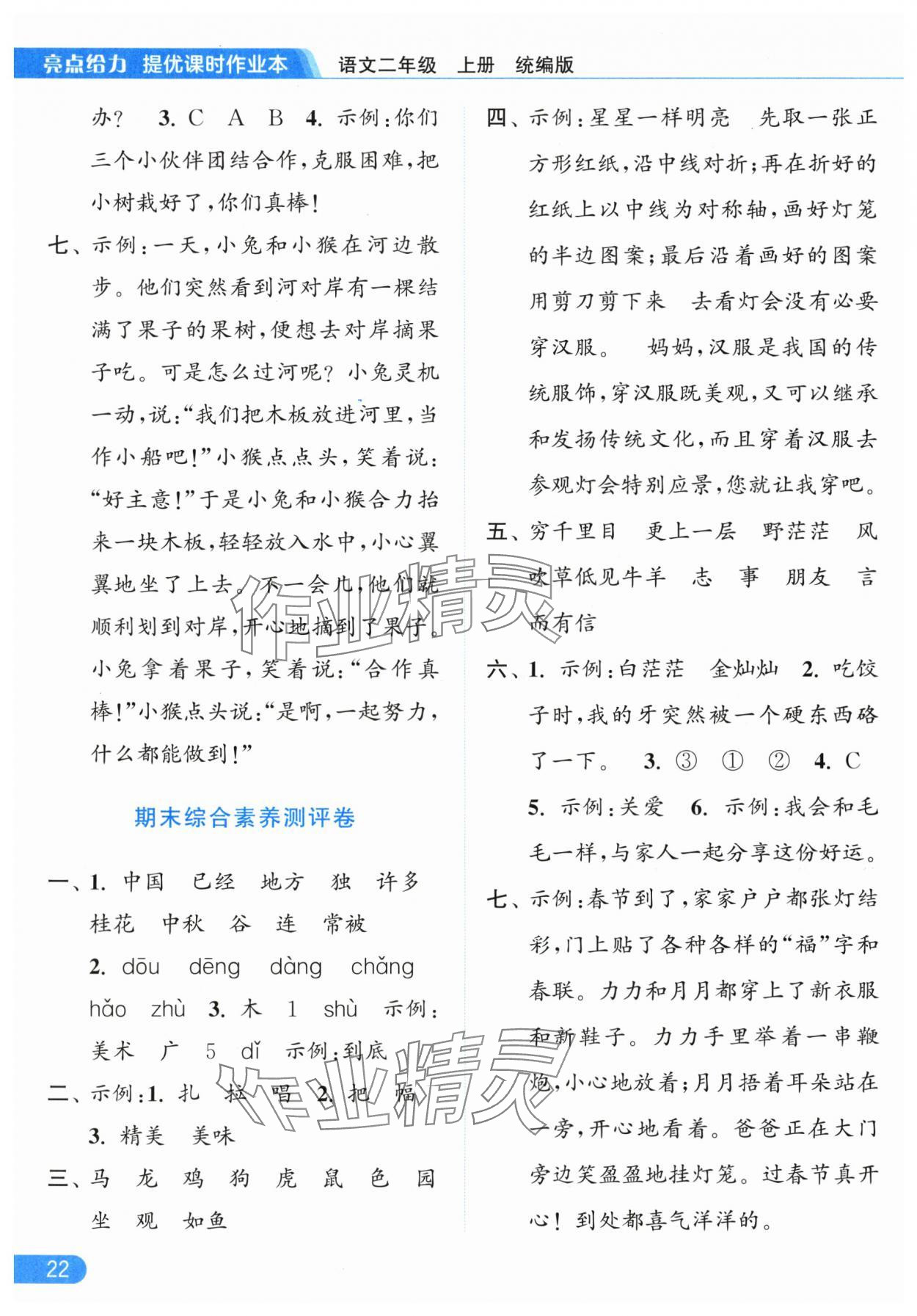 零五網(wǎng) 全部參考答案 亮點給力提優(yōu)課時作業(yè)本答案 2025年亮點給力提優(yōu)課時作業(yè)本二年級語文上冊統(tǒng)編版參考答案第22頁