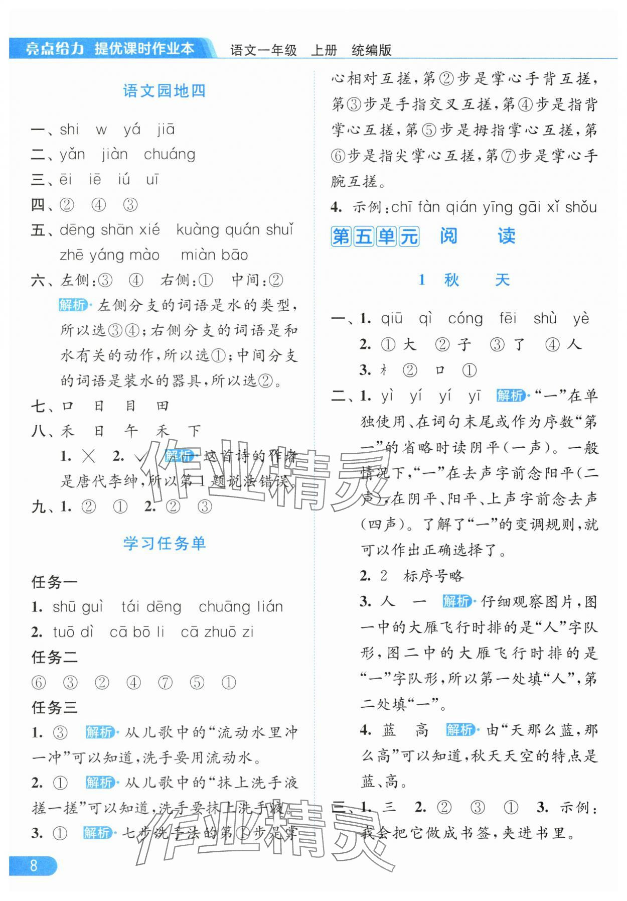 零五網(wǎng) 全部參考答案 亮點(diǎn)給力提優(yōu)課時(shí)作業(yè)本答案 2025年亮點(diǎn)給力提優(yōu)課時(shí)作業(yè)本一年級(jí)語文上冊人教版參考答案第8頁