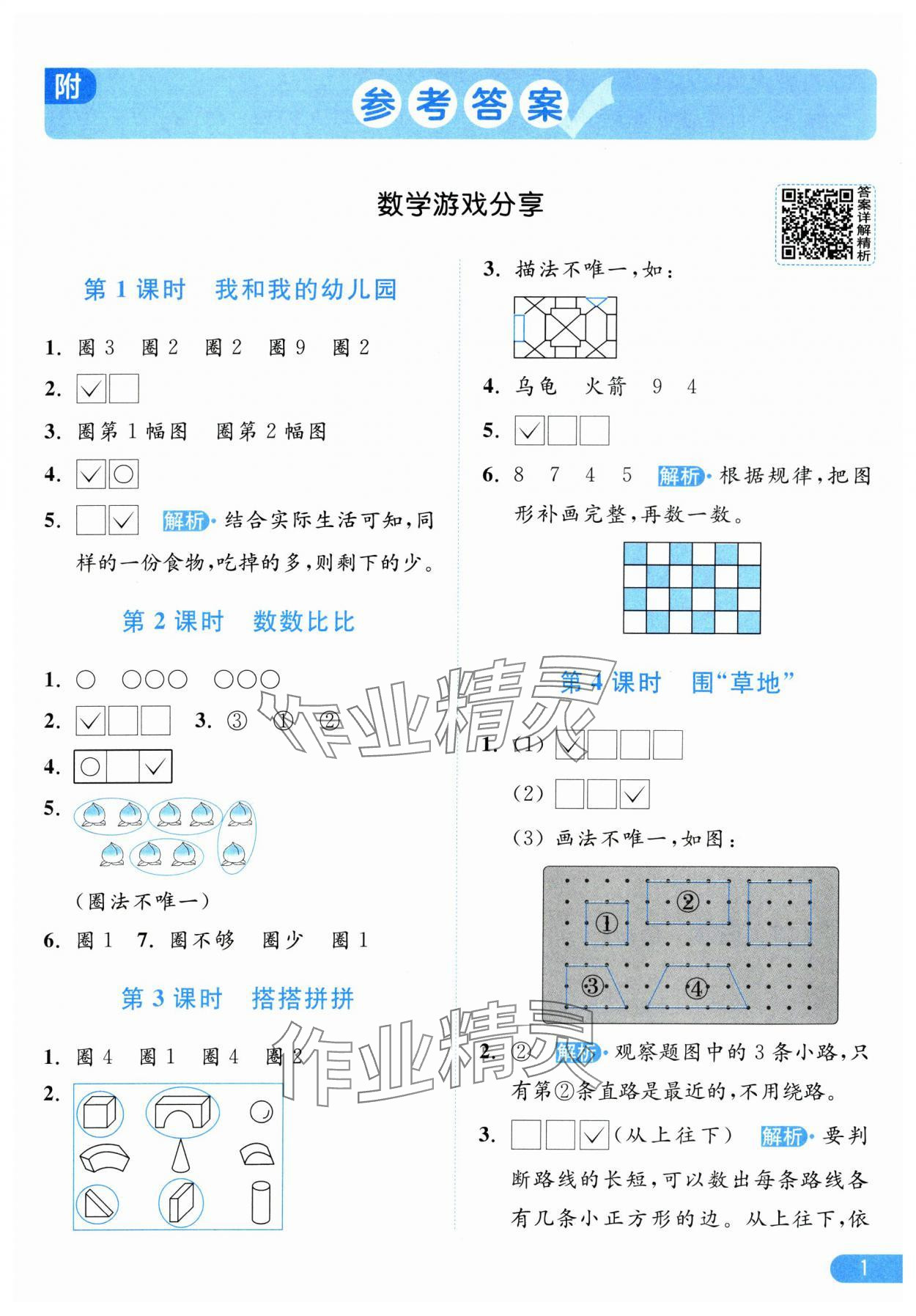 零五網(wǎng) 全部參考答案 亮點給力提優(yōu)課時作業(yè)本答案 2025年亮點給力提優(yōu)課時作業(yè)本一年級數(shù)學上冊江蘇版參考答案第1頁