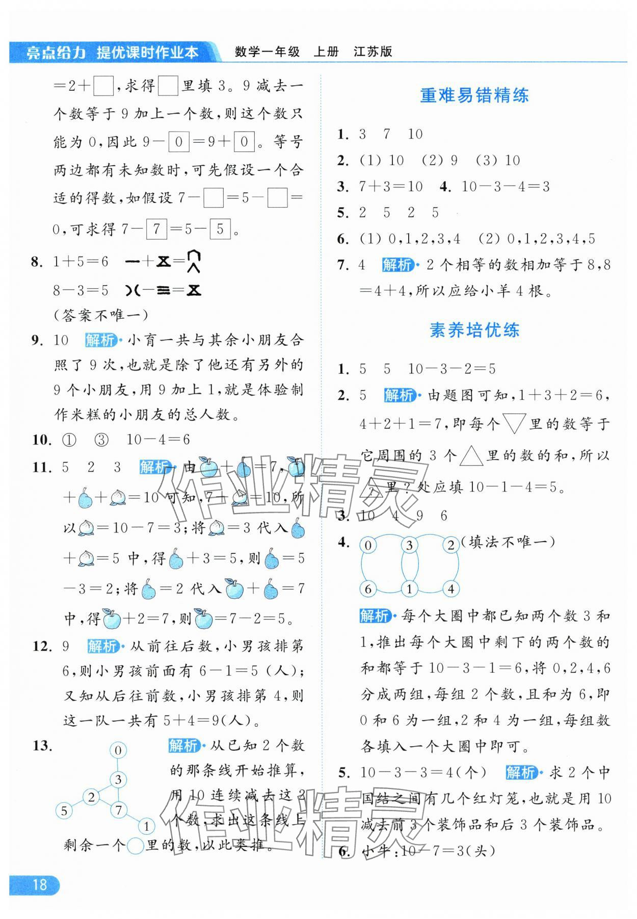 零五網(wǎng) 全部參考答案 亮點(diǎn)給力提優(yōu)課時(shí)作業(yè)本答案 2025年亮點(diǎn)給力提優(yōu)課時(shí)作業(yè)本一年級(jí)數(shù)學(xué)上冊(cè)江蘇版參考答案第18頁