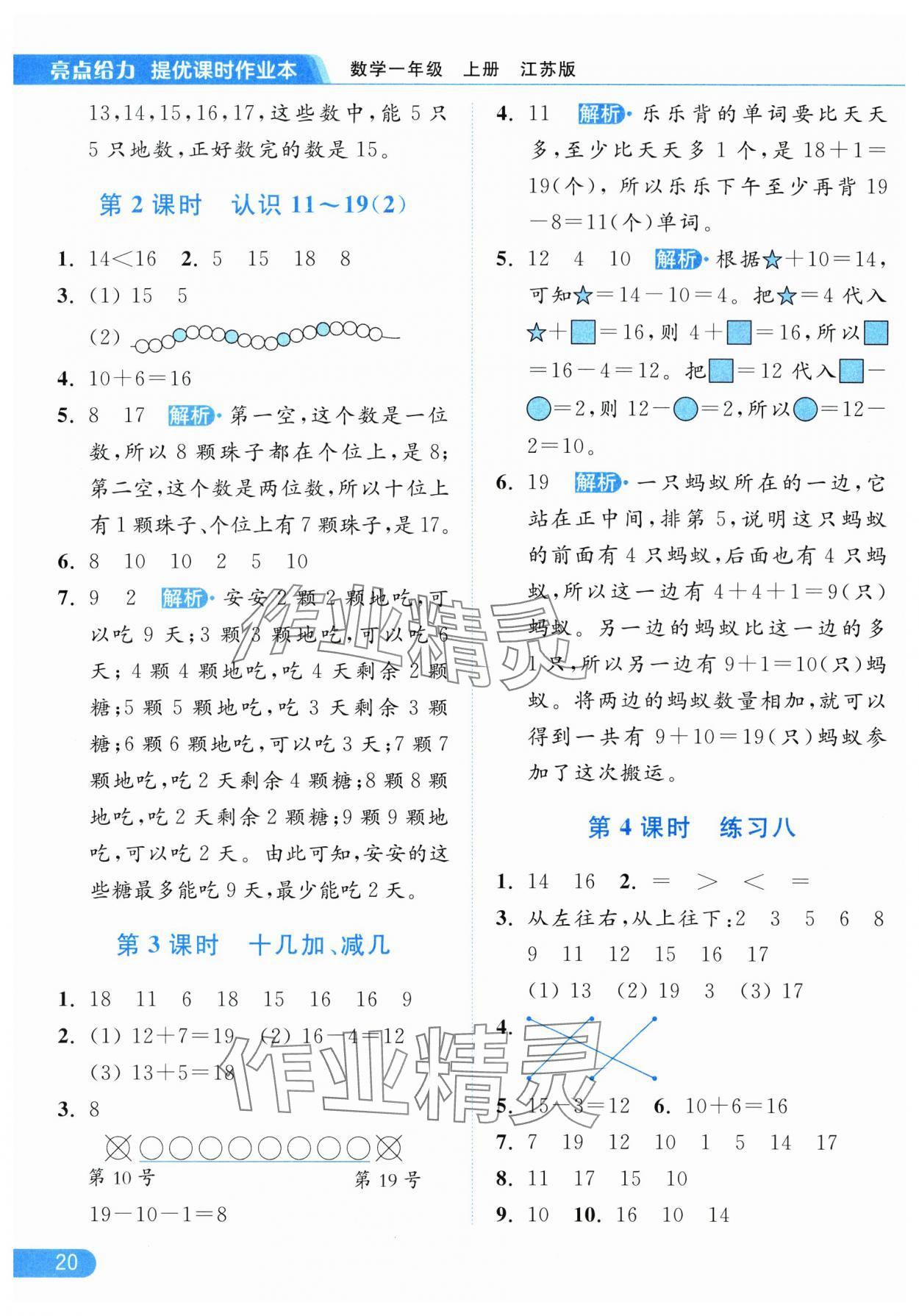零五網(wǎng) 全部參考答案 亮點給力提優(yōu)課時作業(yè)本答案 2025年亮點給力提優(yōu)課時作業(yè)本一年級數(shù)學上冊江蘇版參考答案第20頁