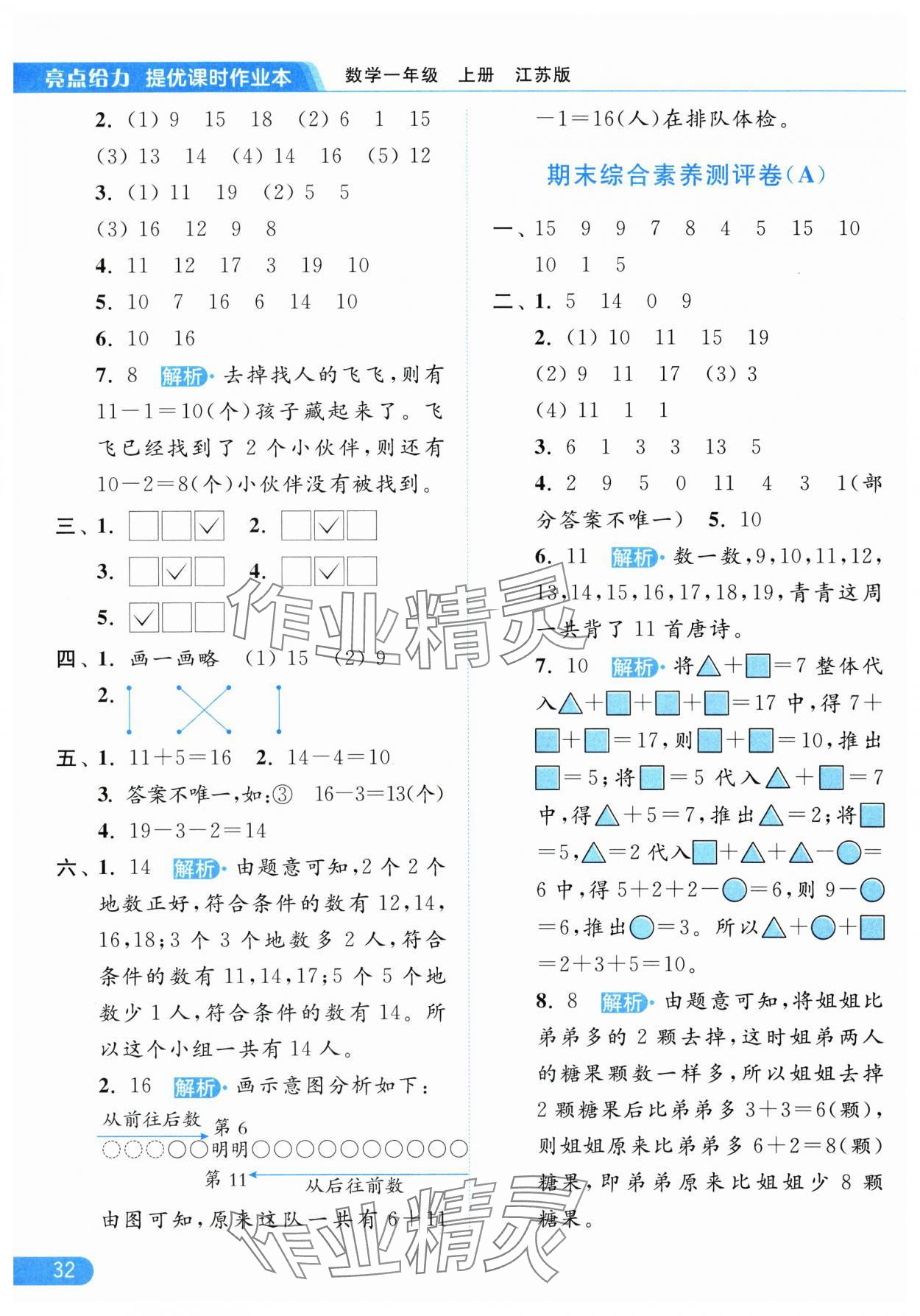 零五網(wǎng) 全部參考答案 亮點給力提優(yōu)課時作業(yè)本答案 2025年亮點給力提優(yōu)課時作業(yè)本一年級數(shù)學(xué)上冊江蘇版參考答案第32頁