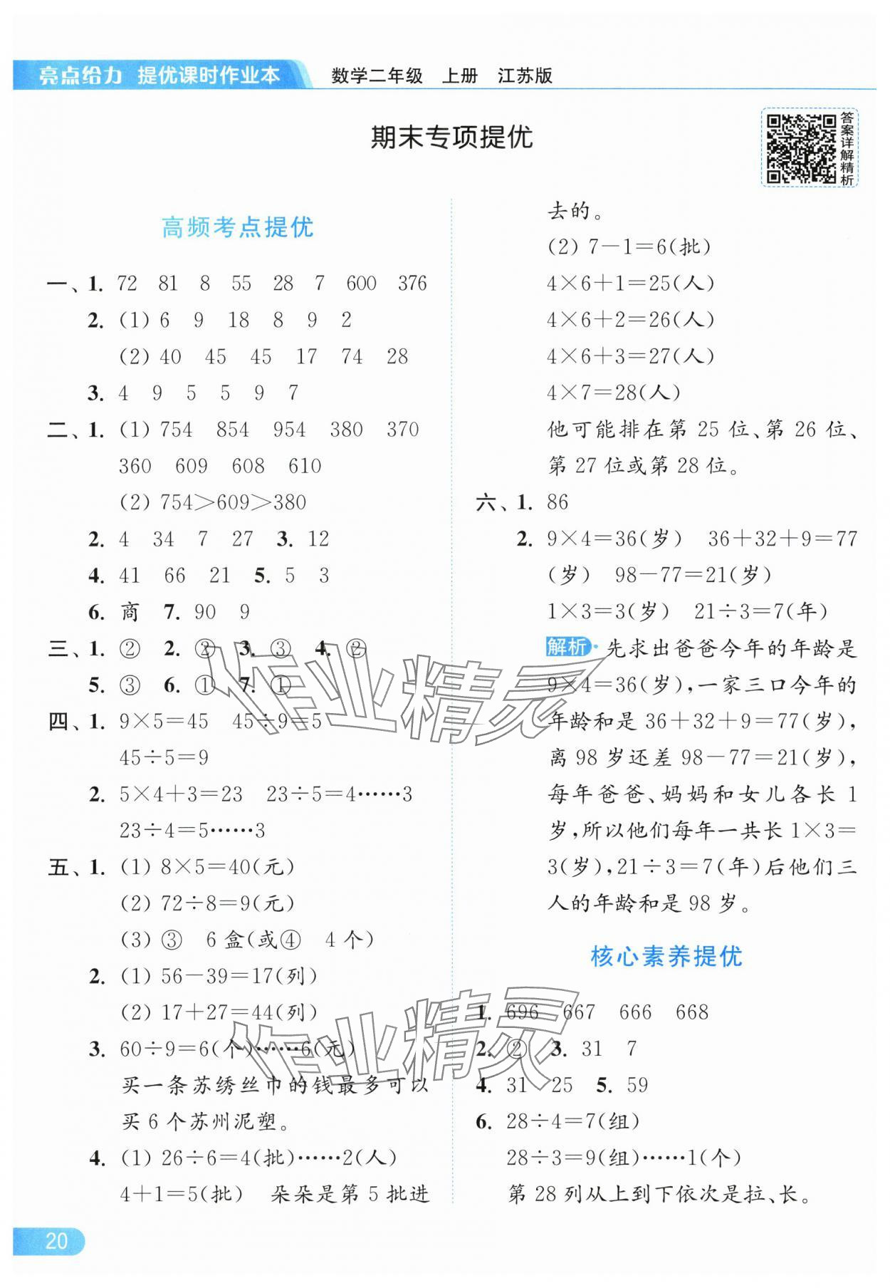 零五網(wǎng) 全部參考答案 亮點給力提優(yōu)課時作業(yè)本答案 2025年亮點給力提優(yōu)課時作業(yè)本二年級數(shù)學上冊江蘇版參考答案第20頁